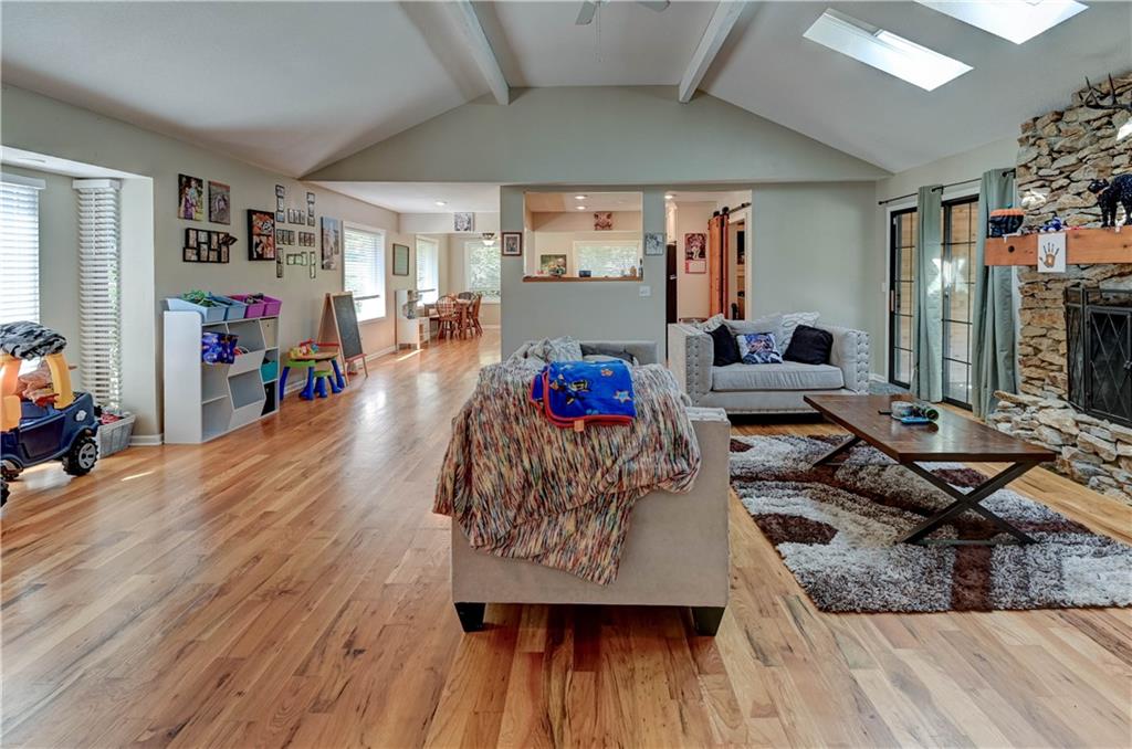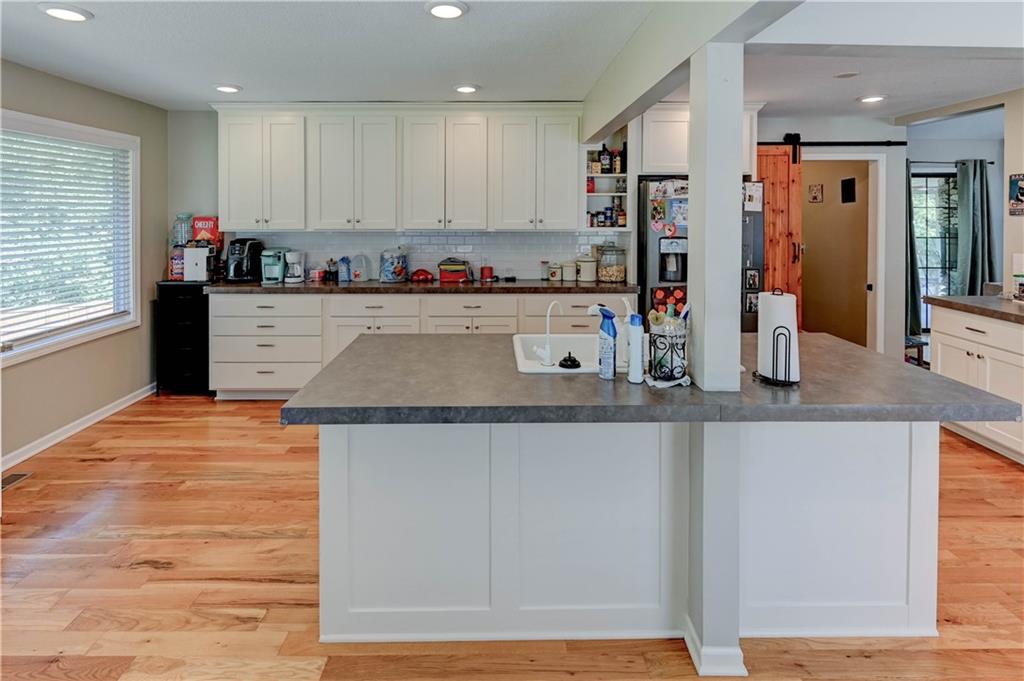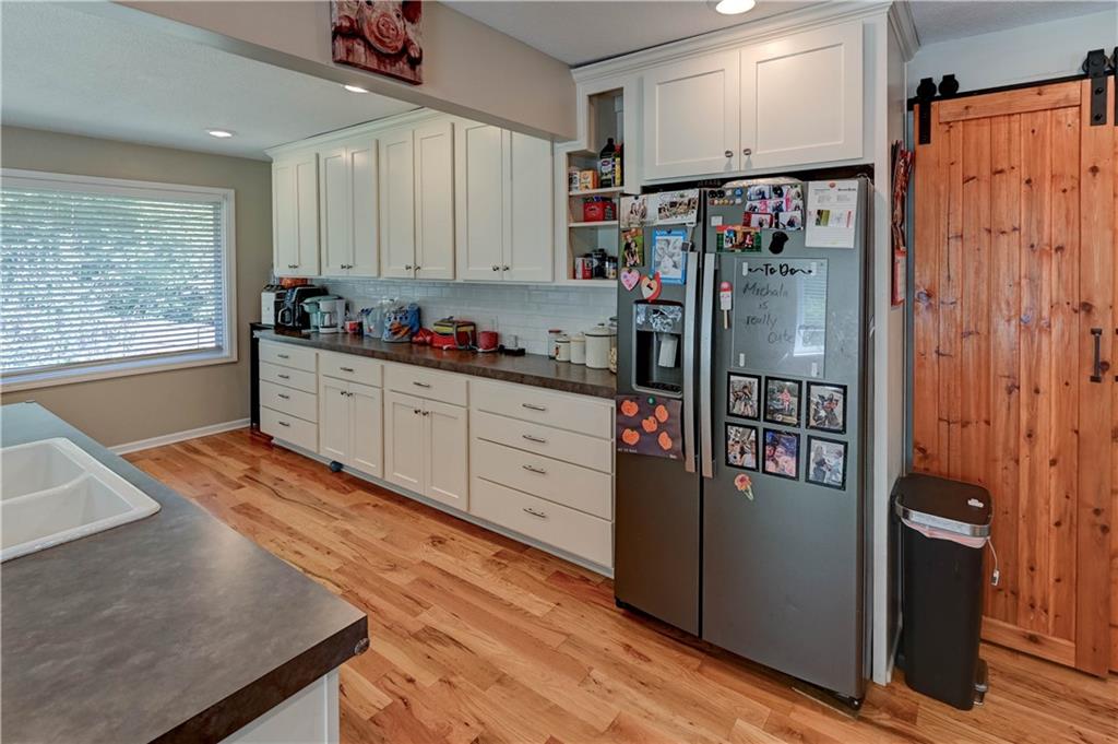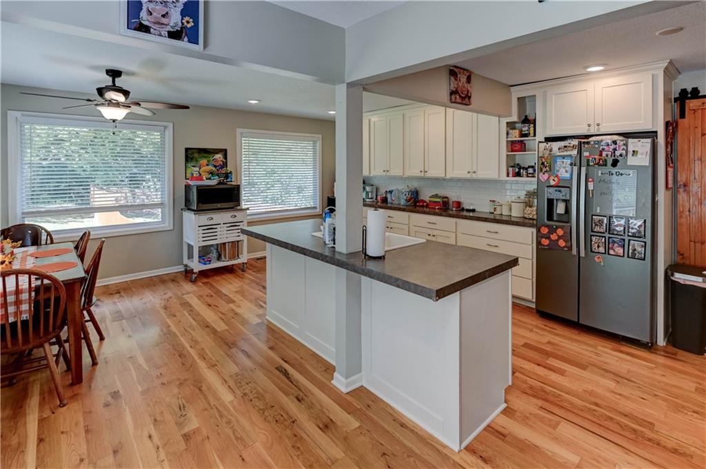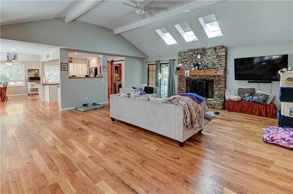 Fall in love with this stunning open-concept home offering convenient main-level living! The updated kitchen features ample cabinet space, while the spacious, modern bathrooms provide comfort and style. The finished basement adds extra flexibility for living or entertaining. New roof and gutters completed in 2024. This home is packed with recent updates that will save you money, including a new HVAC system (installed just 4 years ago), and new vinyl plank flooring. Enjoy your evenings in the screened-in porch overlooking a huge backyard complete with a newer privacy fence and fruit-bearing apple trees. Inside, large windows fill the home with abundant natural light. The lower-level room is already sheetrocked and could easily be finished as a 4th bedroom. Fantastic location—just 5 minutes from The Legends, I-70, and I-435, offering quick and easy access to anywhere in the city!