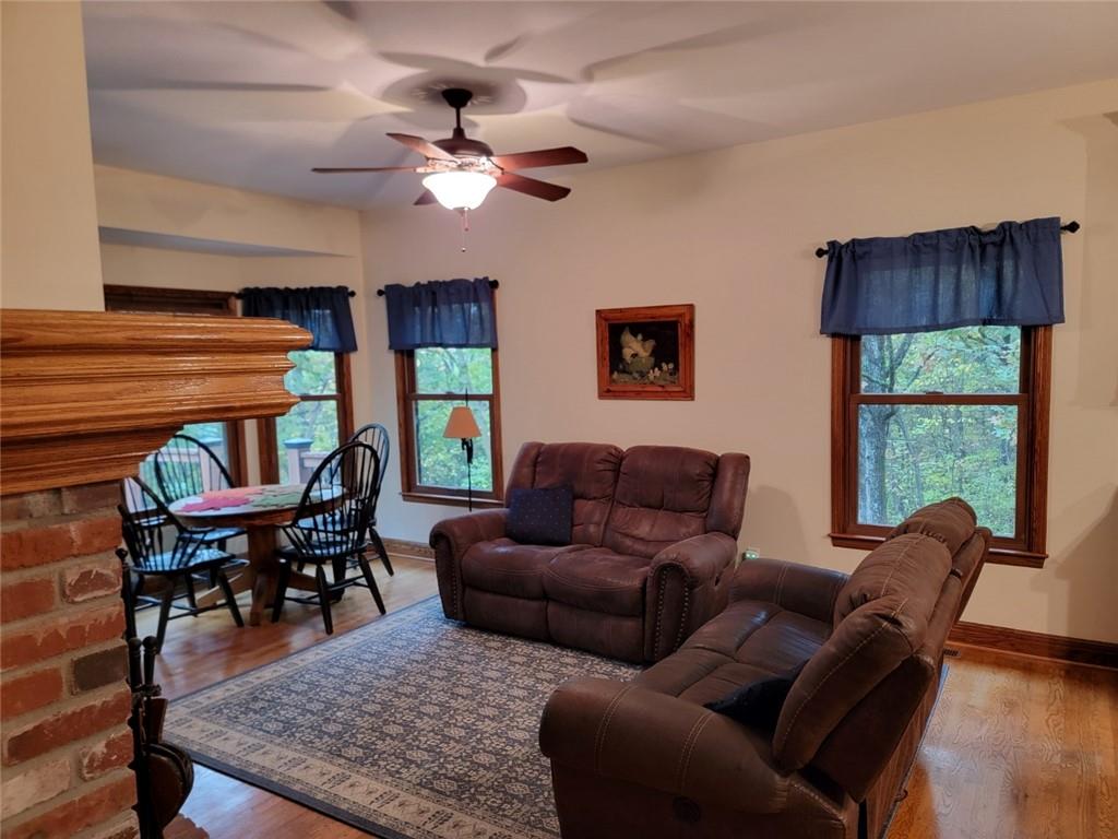 Discover this one-owner custom-built home nestled on 7.3 picturesque acres with a beautiful 1.5 acre shared pond. Featuring 4 bedrooms and 3.5 baths, this home is designed with both comfort and function in mind. The main floor features a spacious primary suite complete with a private sitting room, a well-appointed kitchen with quartz countertops, stainless steel appliances, hearth room, and Anderson windows that fill the home with natural light. Convenient main floor laundry adds ease to daily living. Upstairs, you'll find generous-sized secondary bedrooms along with a versatile loft space perfect for an office, playroom, or second living area. The unfinished basement, stubbed for a bath, provides endless opportunities for expansion. Outside, a 40x50 shop with two 12' doors, concrete floor, and electricity offers ideal space for hobbies, storage, or a small business. This property combines peaceful country living with modern amenities.