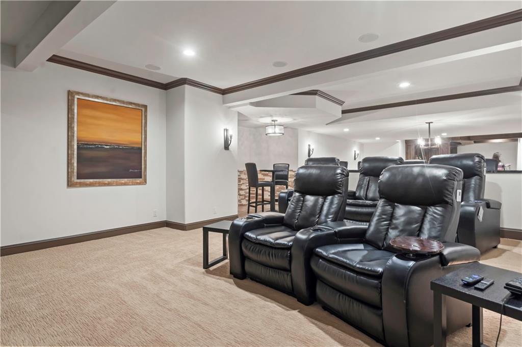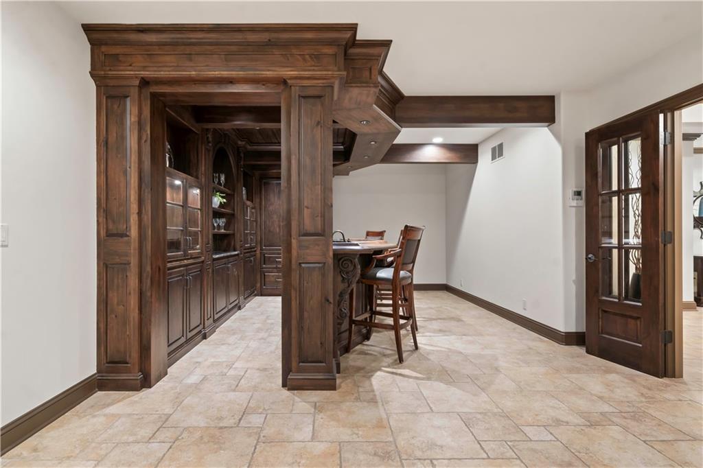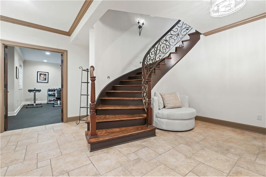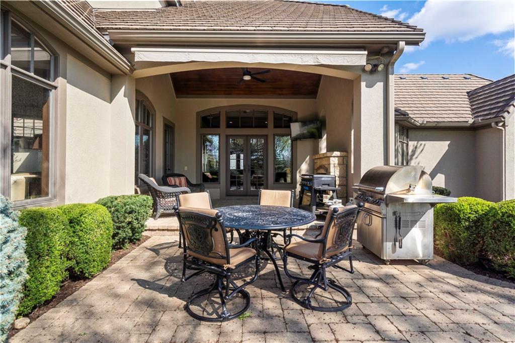 Exquisite 1.5-story home in Mission Farms that blends timeless elegance with modern updates on a beautifully landscaped lot. A dramatic staircase with custom ironwork, solid core doors, and upgraded trim showcase the craftsmanship throughout. The chef’s kitchen features quartzite countertops, custom cabinetry, and top-tier appliances, opening to a cozy hearth room. Formal dining and a spacious living room—ideal for a grand piano—flow seamlessly to a covered paver patio for effortless entertaining. The main-level primary suite is a private retreat with a spa-inspired bath and custom walk-in closet. A handsome office with fireplace completes the first floor. Upstairs offers three bedrooms with fresh paint, new carpet, and updated baths, plus a versatile loft. The lower level, finished by Rick Standard, is designed for entertaining with a full bar, media room, wine cellar, workout room, and fifth bedroom. Multiple outdoor living areas, a sport court, and large backyard provide space to relax, gather, or play. This stately estate offers luxury, comfort, and thoughtful design in one of the area’s most desirable neighborhoods.