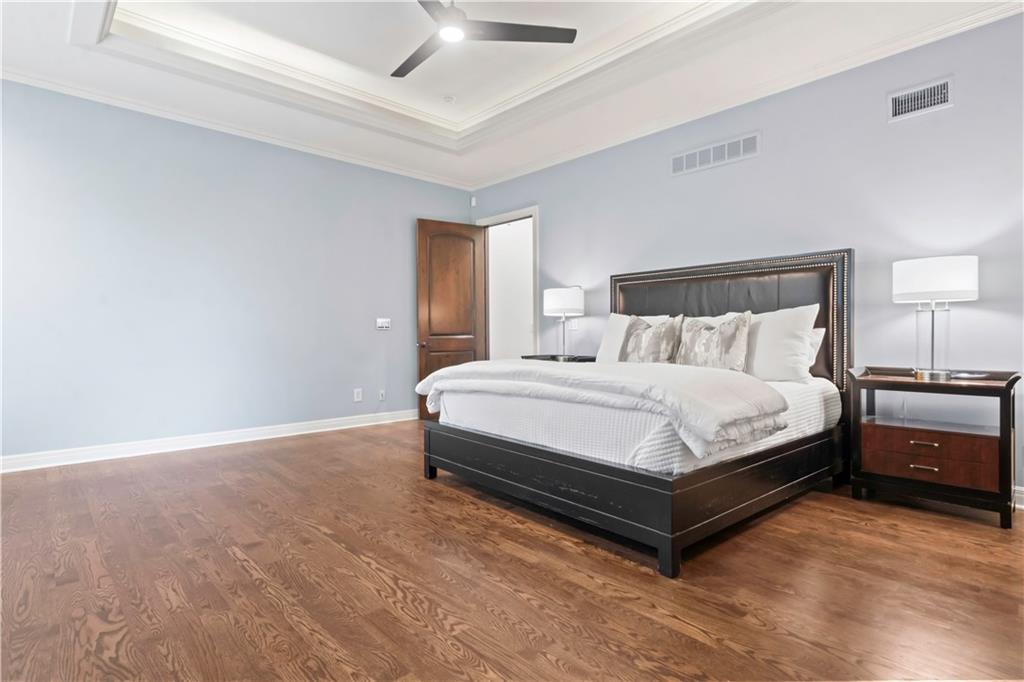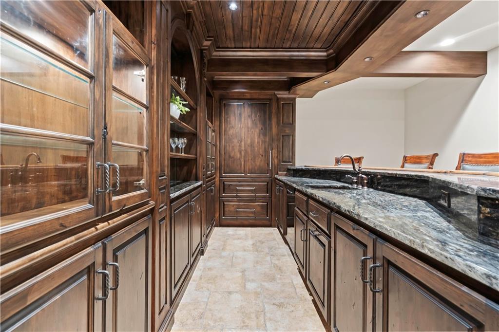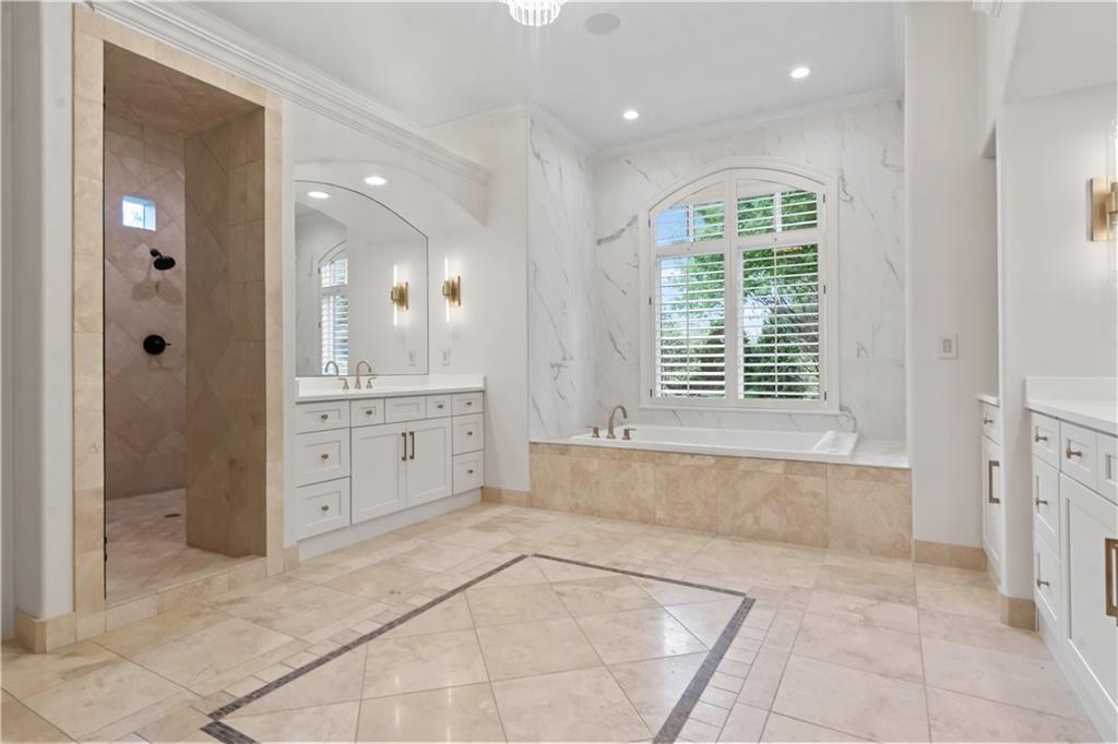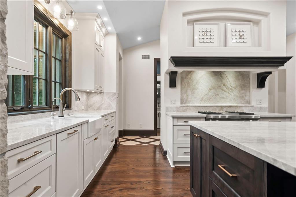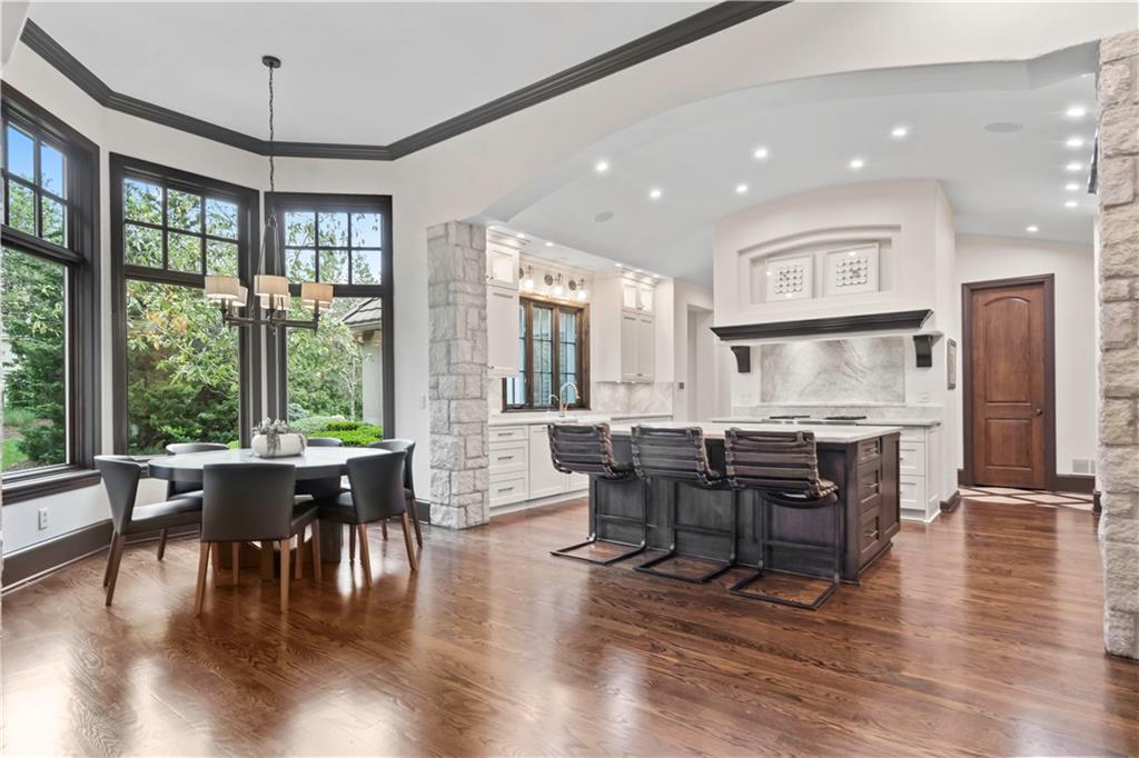 Exquisite 1.5-story home in Mission Farms that blends timeless elegance with modern updates on a beautifully landscaped lot. A dramatic staircase with custom ironwork, solid core doors, and upgraded trim showcase the craftsmanship throughout. The chef’s kitchen features quartzite countertops, custom cabinetry, and top-tier appliances, opening to a cozy hearth room. Formal dining and a spacious living room—ideal for a grand piano—flow seamlessly to a covered paver patio for effortless entertaining. The main-level primary suite is a private retreat with a spa-inspired bath and custom walk-in closet. A handsome office with fireplace completes the first floor. Upstairs offers three bedrooms with fresh paint, new carpet, and updated baths, plus a versatile loft. The lower level, finished by Rick Standard, is designed for entertaining with a full bar, media room, wine cellar, workout room, and fifth bedroom. Multiple outdoor living areas, a sport court, and large backyard provide space to relax, gather, or play. This stately estate offers luxury, comfort, and thoughtful design in one of the area’s most desirable neighborhoods.