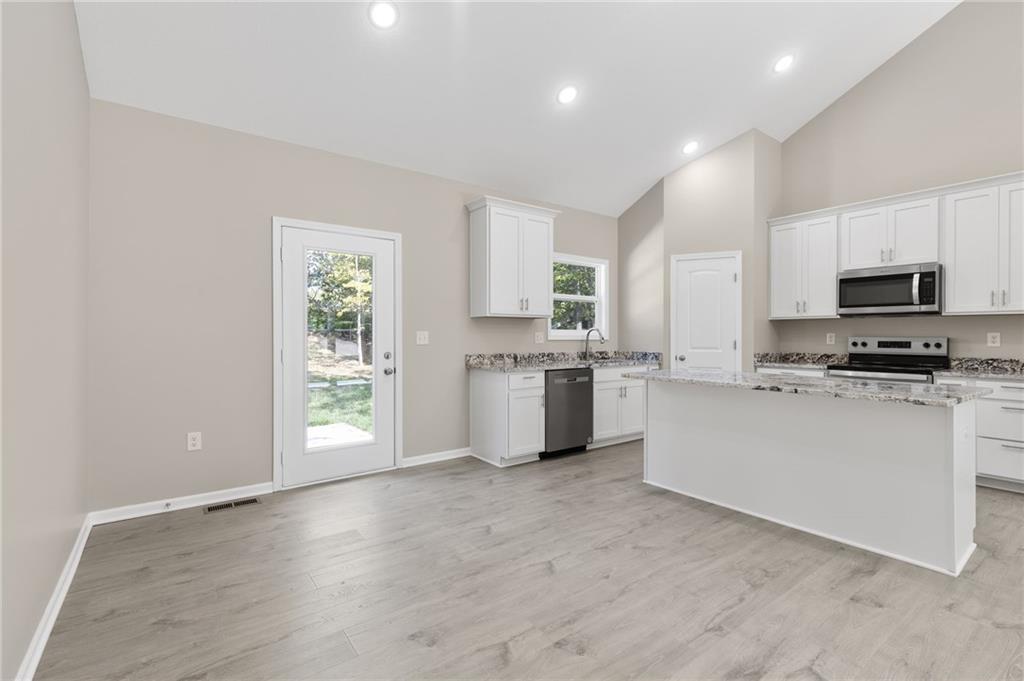 Welcome to 134 Cedar Court, a stunning new construction home tucked away on a quiet cul-de-sac in one of Warrensburg’s most desirable neighborhoods. Just minutes from the University of Central Missouri and Whiteman Air Force Base, this home combines convenience with modern elegance. Featuring four spacious bedrooms and three full bathrooms, the thoughtful floor plan flows seamlessly from the wide-open kitchen into the dining and living areas. Vaulted ceilings, an abundance of natural light, and an airy open concept make this home feel inviting and expansive. The kitchen is a true showpiece, with quartz countertops, stainless steel appliances, and a large walk-in pantry designed to impress any cook. The master suite is a private retreat, offering a generous walk-in closet and a luxurious ensuite bathroom. Every bedroom in this home is oversized, providing plenty of comfort and flexibility for family, guests, or a home office. Step outside to a large backyard with mature trees, perfect for outdoor entertaining or quiet evenings. The two-car garage adds both storage and convenience. With its brand-new construction, timeless finishes, and prime location, this home is move-in ready and waiting for you.