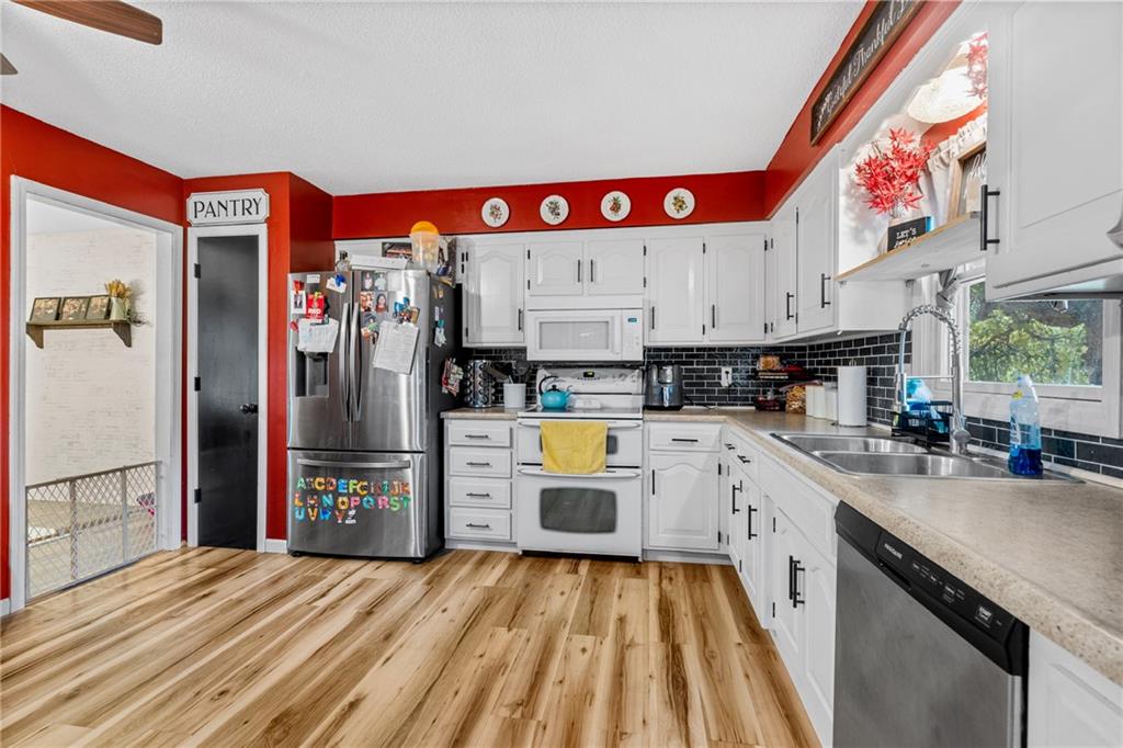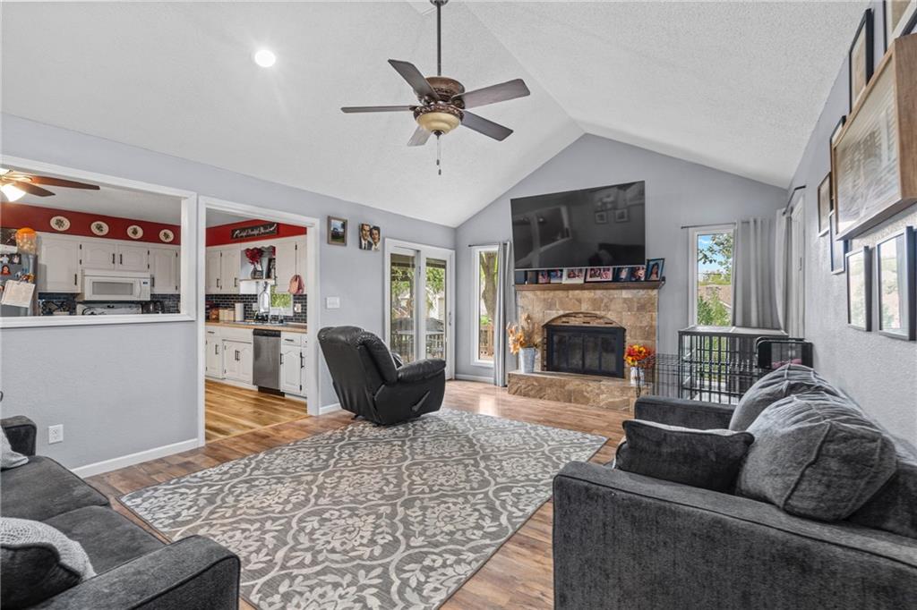 Well-maintained 3-bedroom, 2.5-bath raised ranch in a quiet Harrisonville neighborhood. This charming home features vaulted ceilings, a spacious living room with a stone fireplace, and tons of natural light. The kitchen opens to a dining/flex area, perfect for entertaining. The finished lower level includes a half bath and bonus living space—great for a playroom, office, or guest area. Enjoy a fenced backyard, large deck, and mature trees. Newer flooring, fresh interior paint, 2-car garage, and easy highway access. Move-in ready and full of potential!