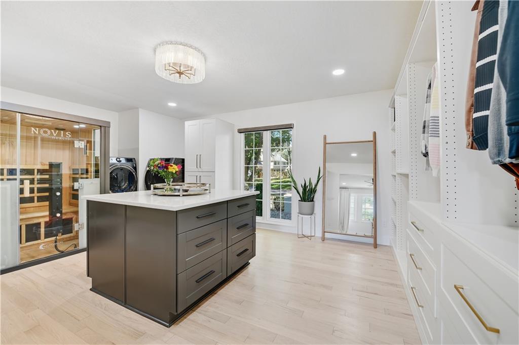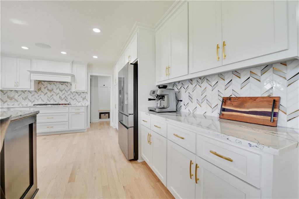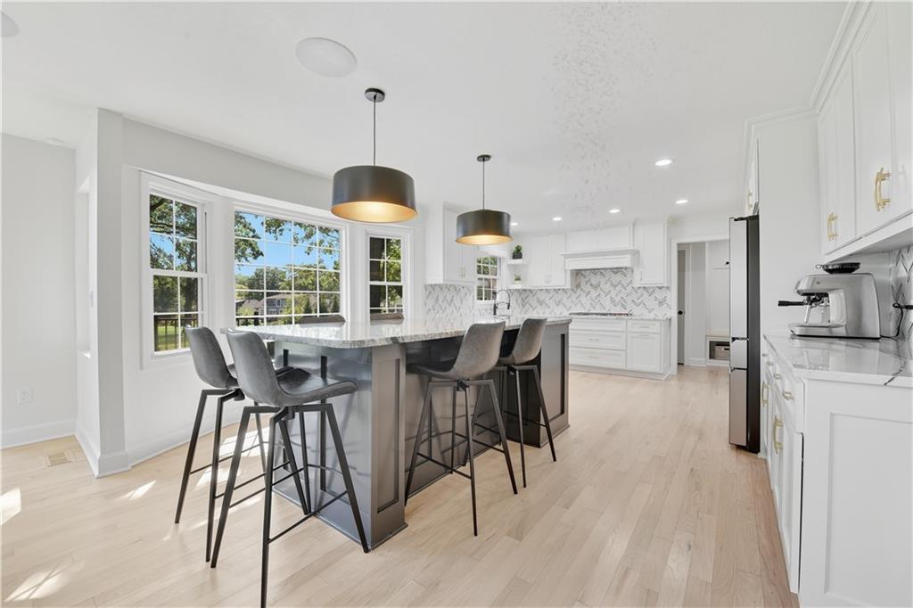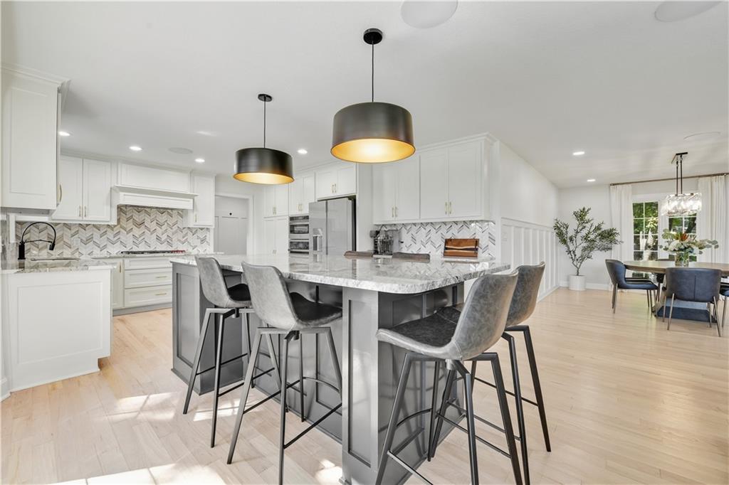 EXPERIENCE RESORT-STYLE LIVING IN THIS FULLY REMODELED 1.5 STORY HOME BACKING TO HOLE #8 IN COVETED LEAWOOD SOUTH. SITUATED ON THE MOST DESIRABLE STREET IN THE NEIGHBORHOOD WITH A LARGE CIRCLE DRIVE JUST WALKING DISTANCE TO THE COUNTRY CLUB, THIS MOVE-IN READY RETREAT COMBINES MODERN UPDATES WITH TIMELESS COMFORT. EVERY DETAIL HAS BEEN THOUGHTFULLY DESIGNED, FROM THE CHEF'S KITCHEN & DESIGNER FINISHES TO THE STUNNING 4-PANEL SLIDING GLASS DOOR THAT EXTENDS THE LIVING SPACE ONTO THE DECK, BLENDING INDOOR COMFORT WITH OUTDOOR GOLF COURSE VIEWS. ENJOY THE SENSE OF OPENNESS & TRANQUILITY WITH NATURE JUST OUTSIDE YOUR DOOR. THE OPEN FLOOR PLAN OFFERS SEAMLESS FLOW BETWEEN THE KITCHEN, DINING, & LIVING AREAS-PERFECT FOR BOTH ENTERTAINING AND EVERYDAY LIVING. THE HEART OF THE HOME BOASTS A STUNNING KITCHEN WITH CUSTOM CABINETS, EYE-CATCHING PENDANT LIGHTING, SLEEK BACKSPLASH DETAIL, & AN OVERSIZED KITCHEN ISLAND PERFECT FOR ENTERTAINING. THE PRIMARY BEDROOM RETREAT ON THE MAIN FLOOR OFFERS ULTIMATE COMFORT WITH A SPA-INSPIRED CUSTOM BATH & A MASSIVE WALK-IN CLOSET FEATURING BUILT-IN ORGANIZATION AND CONVENIENT IN-CLOSET LAUNDRY. THE UPPER LEVEL INCLUDES FOUR BEDROOMS, A BONUS LAUNDRY AREA, AND AN UNFINISHED ATTIC SPACE WITH POTENTIAL TO ADD EVEN MORE SQUARE FOOTAGE. THE LARGE WALKOUT BASEMENT OFFERS INCREDIBLE FLEXIBILITY WITH A FULL BATH, ABUNDANT STORAGE, AND ENDLESS POSSIBILITIES FOR A HOME GYM, THEATRE, OR GUEST SUITE. ENJOY THE LUXURY OF AN OVERSIZED LOT, PROVIDING EXTRA ROOM FOR OUTDOOR LIVING, ENTERTAINING, OR SIMPLY SOAKING IN THE PEACEFUL GOLF COURSE SETTING. THIS HOME HAS BEEN SOLD TWICE OFF-MARKET, A TRUE TESTAMENT TO ITS DESIRABILITY, AND IS NOW BEING OFFERED FULLEY RENOVATED FOR ITS NEXT OWNER. THIS PRIME LOCATION OFFERS BOTH AWARD-WINNING BLUE VALLEY SCHOOL DISTRICT AND QUICK ACCESS TO THE AREA'S BEST RESTAURANTS AND AMENINITES. IT IS TRULY A ONCE-IN-A-LIFETIME OPPORTUNITY TO LIVE IN A FULLY RENOVATED, GOLF COURSE HOME IN THE HEART OF LEAWOOD.
