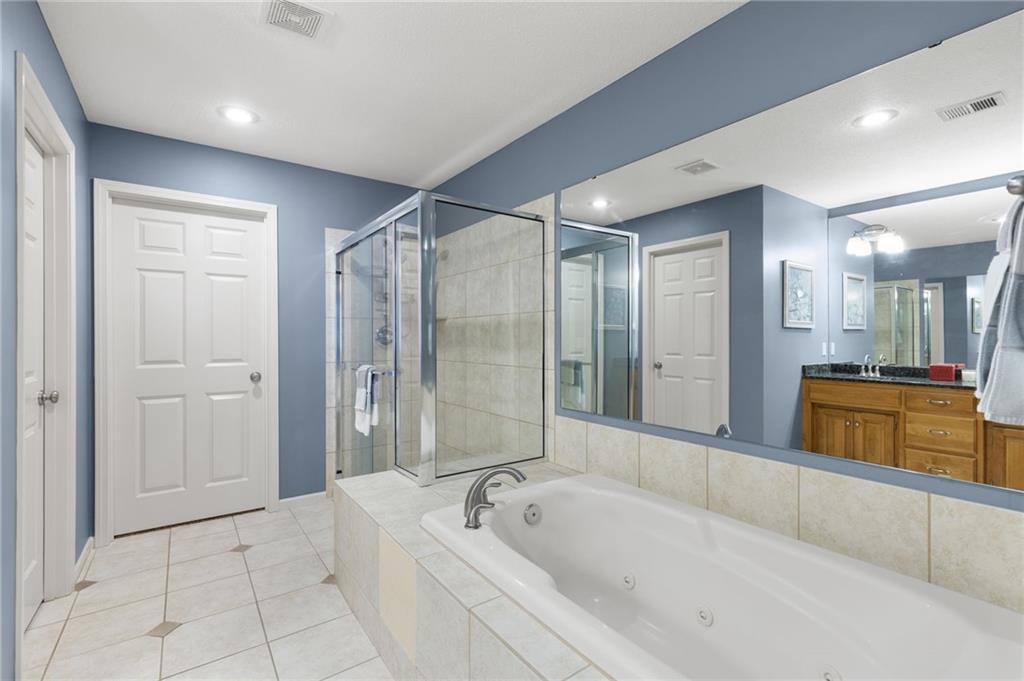 Maintenance provided living at its best in this stunning Tom French–designed Winston plan townhome, perfectly located in the highly sought-after Villages of Quail Park. This gorgeous neighborhood is known for its lush, manicured landscaping and inviting curb appeal, and this home is tucked onto a quiet cul-de-sac with a shared driveway, creating both privacy and charm. The ledge stone and stucco exterior welcome you to a covered front porch and storm door entry. Inside, gleaming hardwood floors set the tone, flowing past a stately half bath with granite vanity and into the spacious great room. Centered by a stone fireplace flanked by large windows, the great room creates a warm and inviting space that seamlessly connects to the breakfast area. From here, step through French doors to the screened-in deck with access to a flagstone patio and small yard—an ideal spot for morning coffee or evening relaxation. The kitchen offers a granite breakfast peninsula, stainless steel appliances, and two access points to the laundry room, one leading directly to from the kitchen and the other from the main entry hallway. Upstairs, a versatile loft/office area provides additional living space, perfect for working from home or relaxing with a book. The owner’s suite is a true retreat with plush carpet, ceiling fan, and French doors that open to a spa-like en suite bath featuring a jetted tub with tile surround, separate shower with ledge, double granite vanity, and large walk-in closet. Two additional bedrooms, each with ceiling fans, blinds, and soft carpet, share a hall bath with tile flooring, an extended granite vanity, and shower. The daylight, unfinished lower level is stubbed for a bath and offers excellent storage now with the opportunity to expand living space in the future. Blue Valley Schools add to the value of this thoughtfully designed home in a community where comfort, convenience, and timeless style come together.