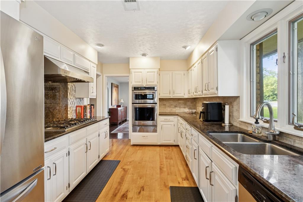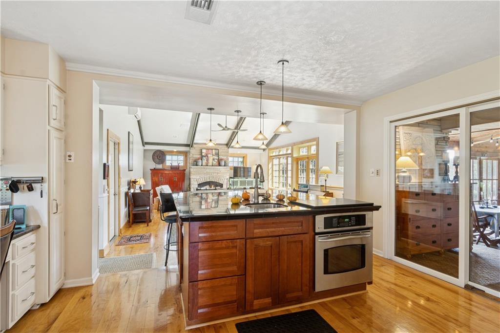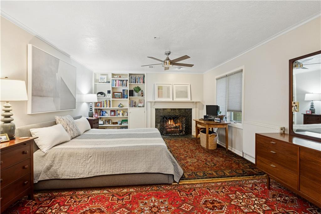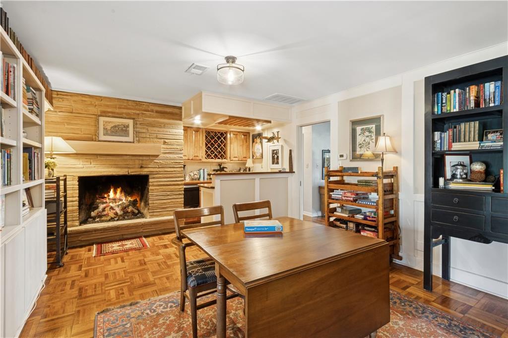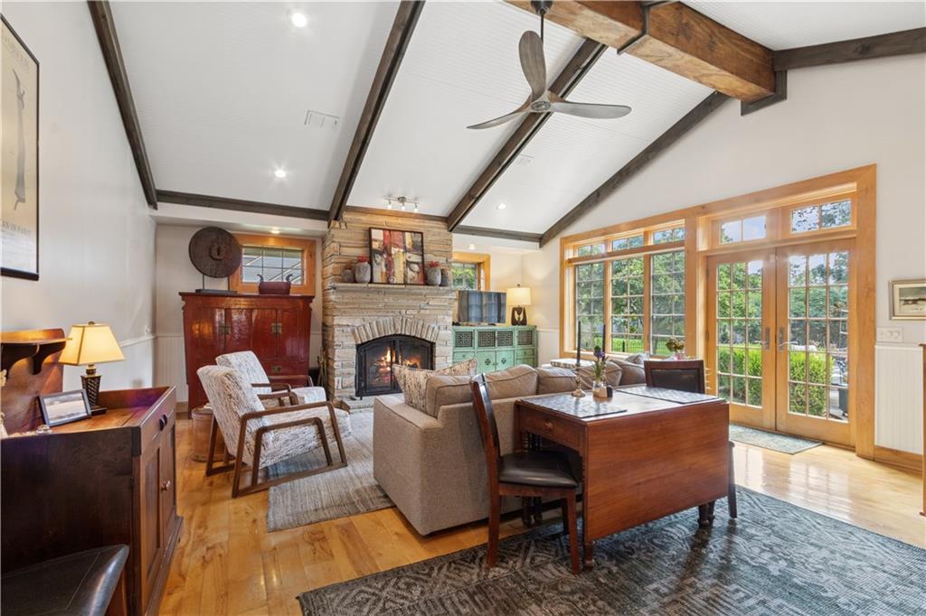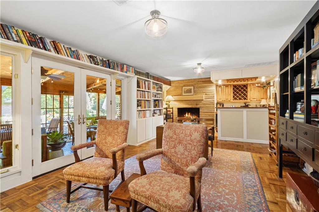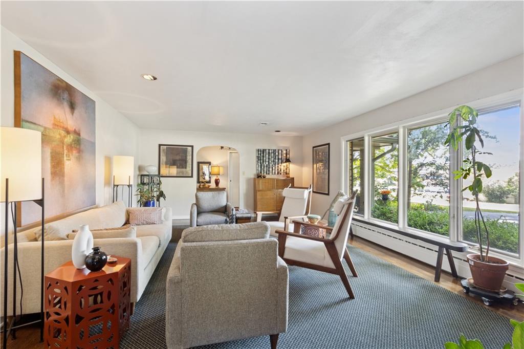 This beautiful mid-century home features twice cut random uncoursed sandstone masonry on the exterior and through the home. This rambling ranch is a tribute to Frank Lloyd Wright and an eye catcher as you enter Mission Hills. This home sits on .8 acre with beautiful mature trees. The Chef's kitchen opens to a large vaulted family room with a sandstone gas insert fireplace. Off of the kitchen is an entry to a massive sandstone screened porch featuring a wood burning fireplace and a slate radiant heated floor. From the porch you can open French doors into the office/library, which features a sandstone gas-insert fireplace and wet bar. Between the kitchen and the library/office is a half-bath and laundry room. The light filled Living room provides some of the finest sunsets and is adjacent to the formal dining room. The primary room also has a gas insert fireplace, walk in closets and radiant heated master bathroom floor. The large two bedrooms are joined by a newly finished Jack and Jill bath also with a radiant heated floor. A sprawling finished basement has a large entertainment area that leads into living quarters with 2 nonconforming bedrooms, however the exercise room in picture 34 can be a 4th conforming bedroom, included is a full bath and kitchen with a walkup to the back yard. This is a must see home which is in walking distance to schools and the Prairie Village shops. Seller is an owner and a real estate agent