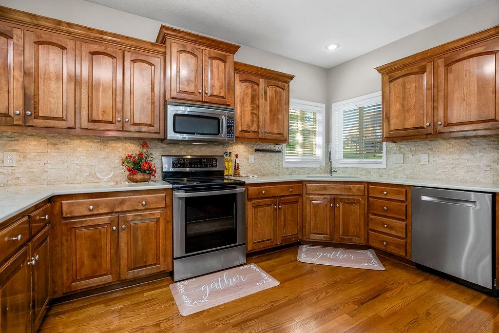 Live The Lifestyle You’ve Always Imagined In Amber Meadows Impeccably designed and meticulously maintained, this remarkable 1.5-story with finished basement home of almost 3,900 sq ft, with 5 bedrooms and 3 and a half bathrooms blends modern updates with a family oriented layout. You'll find walking trails, a neighborhood pool and a quiet, serene place to call home for you and your family. The heart of the home is a generously sized kitchen with pristine quartz countertops, a walk-in pantry, and a custom beverage center—crafted for both culinary artistry and effortless entertaining. The main-level primary suite is a private sanctuary, featuring dual sinks, a separate vanity, an expansive walk-in closet with built-in cabinetry, and direct access to the laundry room for ultimate convenience. Ascend to the upper level, where you’ll discover three spacious bedrooms, and a full bath, each offering comfort and style. The finished lower level elevates the home with a trendy wet bar, a generous entertainment space, a fifth bedroom, and a full bath—ideal for guests or extended gatherings. Outside you will find a beautifully designed patio with pergola, perfect for hosting entertaining evenings with friends and family or simply enjoying serene moments outdoors. A rare offering in the coveted Amber Meadows community, this home is the epitome of suburban living. Prepare to be inspired—schedule your private showing today. Kansas City, MO address - Liberty Schools!