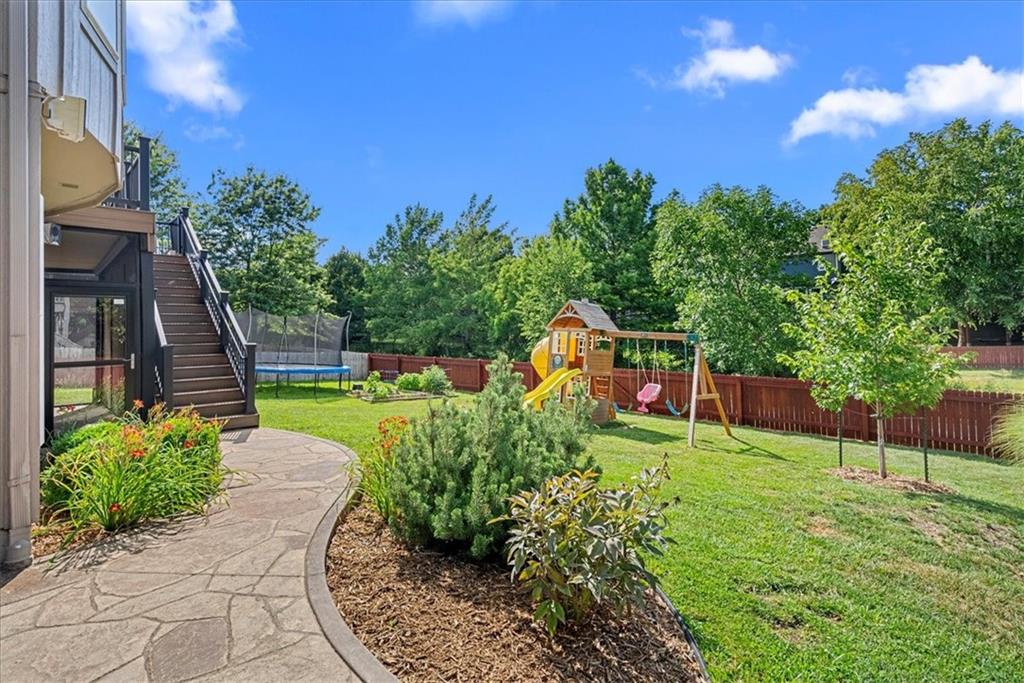 Best Value in the Neighborhood with New paint, updated kitchen, Trex deck, new flooring, new carpet and move in ready!! This home sits on a premium cul-de-sac lot backing to city-maintained green space with direct access to trails—perfect for biking, strolling or just enjoying the outdoors. Inside, you’re greeted by an inviting entryway, leading to an open-concept main floor with a spacious great room, kitchen and formal living and dining room. The spacious kitchen features granite countertops, ample cabinet space, and open sight-lines that make it perfect for gatherings. Upstairs, you'll find generously sized bedrooms, including an oversized primary suite with a large sitting room/office, spa-like bath, and an expansive walk-in closet. All secondary bedrooms each have their own bathroom access & walk-in closets! The walkout finished basement includes a wet bar/kitchenette, media room, office/game area, full bath, and plenty of room for entertaining or unwinding. Home is set up for great multi-generational living or home business. Small room in walk-out basement was previously a home salon. Perfect sized fenced backyard with a stunning stamped concrete patio, ideal for entertaining or relaxing. Enjoy the screened-in outdoor living area for extra entertaining space. This home provides unbeatable convenience—just a block from top-rated schools, close to neighborhood parks, pool, churches, and easy highway access. Plus, you're just minutes from great shopping and dining options. This home has it all—space, location, amenities, and style, in one of the area’s most desirable neighborhoods!