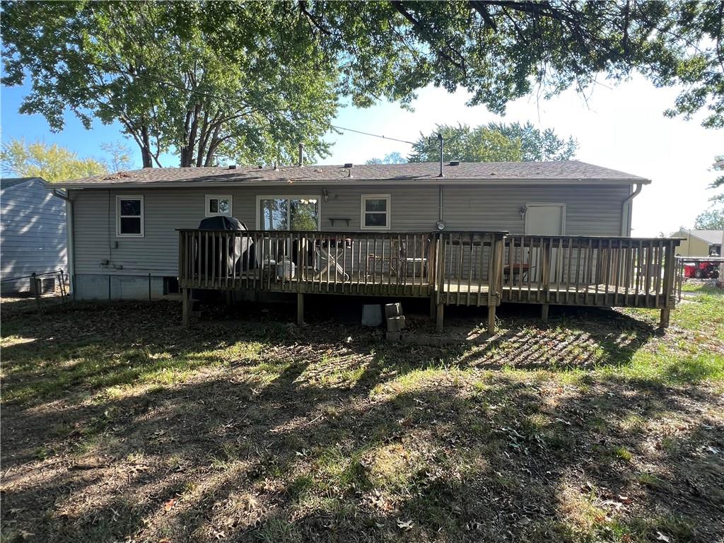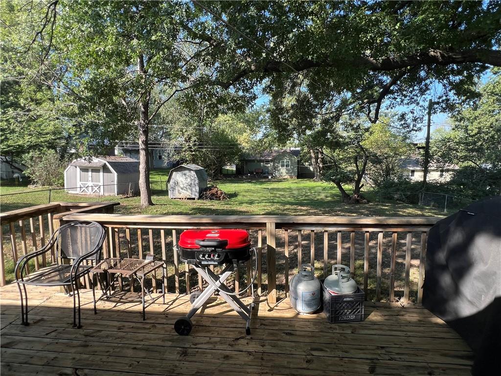 Charming True Ranch-One Level Living This well maintained true ranch home in the Gracemor neighborhood offers comfortable one level living with 3 bedrooms and 1.5 baths. Lots of updating, newer vinyl windows, main level bathroom updated, lots of wood floors and white kitchen cabinets. The finished basement has new carpet, rec room plus versatile area perfect for an office/den, studio, exercise room etc. Step outside to the large deck area overlooking the large fenced yard ideal for entertaining, gardening or play. Conveniently located with easy access to I-435 and I-35 highways, you'll enjoy a quick commute to downtown, the airport, shopping, dining and top medical facilities. Don't miss this opportunity to own a ranch home with space inside and out in a prime location.