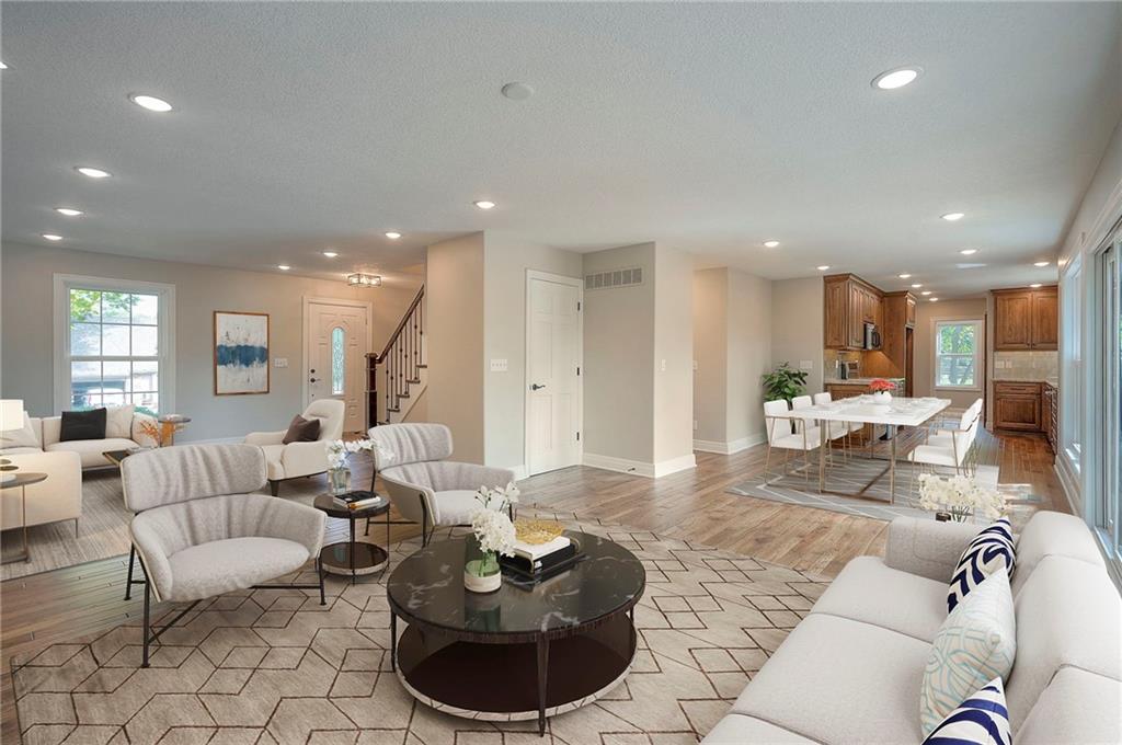 ONE OWNER HOME! THIS ONE WILL GO FAST!! This Don Julian built home is move in ready and has had a MAJOR remodel in 2025!! This is an OPEN floor-plan, four-bedroom home on a 1/2-acre lot on a quiet cul-de-sac neighborhood in Western Shawnee. Located in the much sought after Quivira Woods subdivision (known for its annual Christmas light drive-thru!) The new gorgeous hickory hardwood floors flow seamlessly throughout the main level. The kitchen has brand new hickory cabinets with under cabinet lighting and a floor to ceiling pantry with motion light. The new expansive outdoor composite deck overlooks a beautiful treed lot. This is an entertainer’s dream! It has a newly installed, upgraded Class-4 impact resistant roof with new gutters and gutter guards. **Sellers have had a professional appraisal done and the listing price reflects the price of that appraisal!** *A few pictures have been virtually staged*