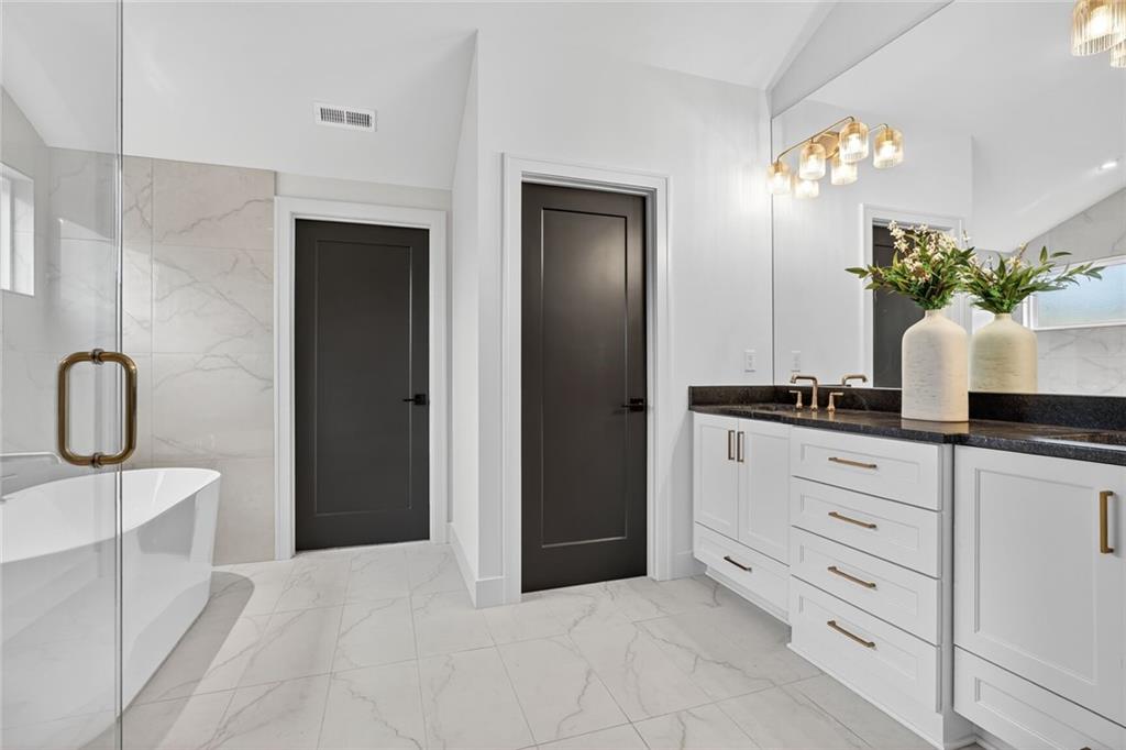 Price Reduction - MOJO Built's functional first-class Modern Farmhouse 2 story floorplan. Plenty of main floor living space with a dedicated dining area and expansive kitchen featuring unique interior and exterior stone features, giving this home more of an elevated feel. All of the MOJO standards are included in this home meaning quartz countertops in the kitchen with soft-close drawers & undercabinet LED lighting, refrigerator included, engineered hardwood floors, a trim package that includes a large base on 1st Floor, large door/window casing, crown molding, wainscoting in the foyer and den, & large base and large window/door casing in Upstairs hallway, and a custom marble fireplace in the living room! Mirrors provided above all bathroom sinks, & wall-to-wall carpeting in basement, in all 2nd floor bedrooms, and runner on staircase. Master bath includes a frameless clear-glass shower door and custom surround for Master Shower with chrome hinges/hardware and undercabinet LED lighting. Quality of construction reflected in drywall with Level 5 ceilings & Level 4 Walls with square corners and flat finish on all ceilings, including the garage, in paint with a flat finish on all walls with eggshell enamel and painted garage walls and ceiling, Exterior finishes with a 30yr composition roof, HVAC w/high-efficiency 96% AFUE gas furnace and 13-SEER AC Unit and Humidifier Included, and in Plumbing & Electrical w/ a 50-Gallon Gas Water Heater, Blanco Kitchen Sink, can lights throughout common areas, and buried 200amp electrical service. **Photos are of another MOJO Built home with a similar floorplan