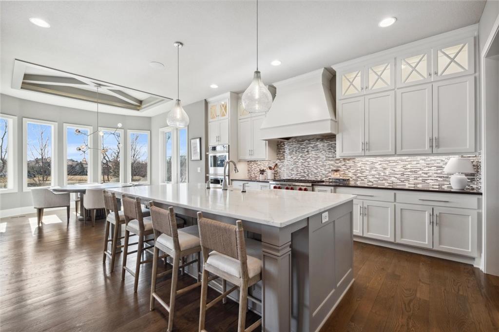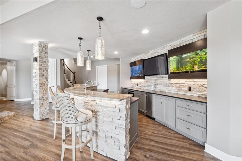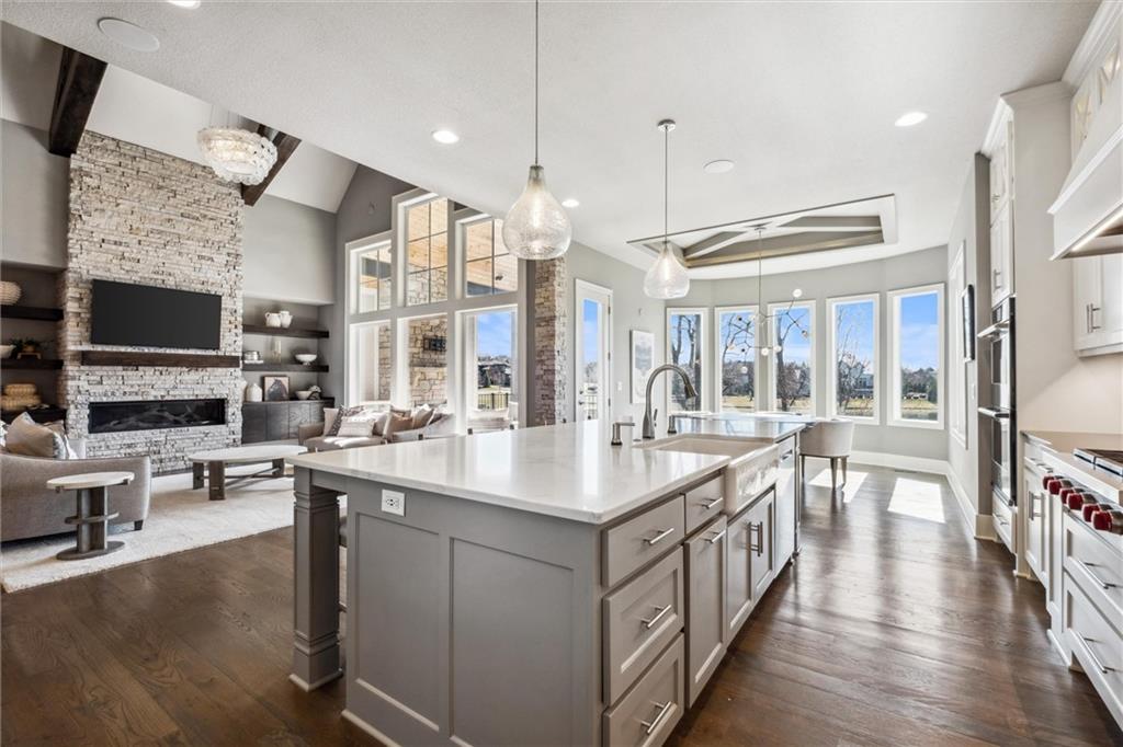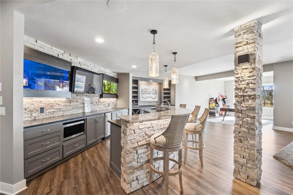 Paradise Found! Where Every Day Feels Like a Private Retreat. Welcome to 16121 Paradise Street, a waterfront sanctuary nestled in the heart of Overland Park’s prestigious Mills Farm community. From the moment you step inside, you’re greeted by sweeping views of the tranquil pond and a layout designed for both grand entertaining and intimate moments. This 1.5-story masterpiece offers over 7,000 square feet of curated luxury: • A chef’s kitchen with double islands and hidden pantry • Hearth room with fireplace and water views • Main-level primary suite with spa bath • Lower-level theater, game room, and full bar—your personal entertainment wing • Custom aquariums that double as living art • Outdoor living spaces that rival resort settings, complete with fire features and lush landscaping Whether you're hosting sunset soirées or enjoying quiet mornings with coffee by the water, this home delivers a lifestyle that’s as elevated as its design.