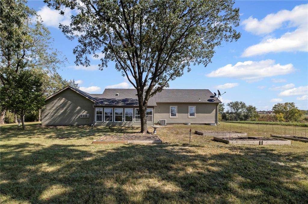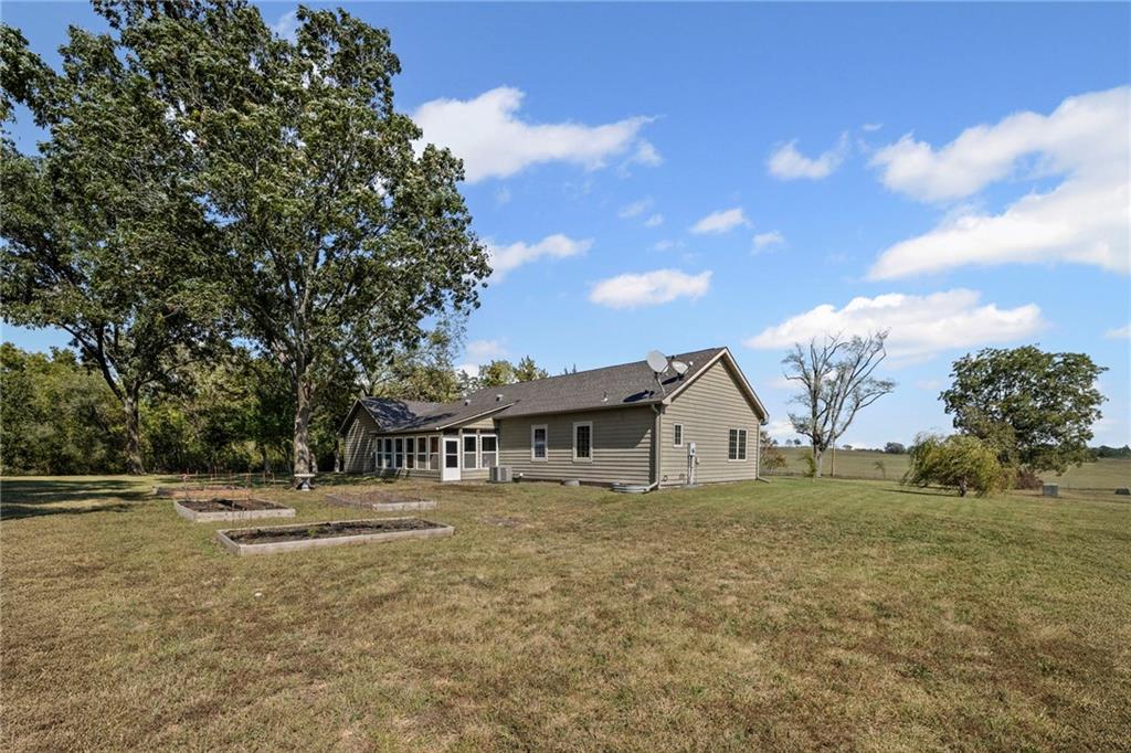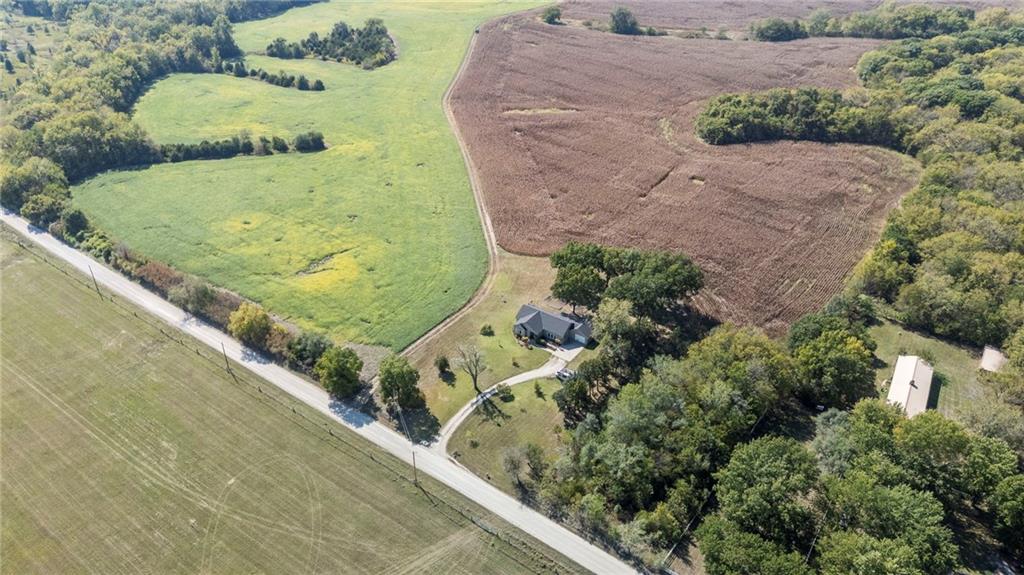 Back on the market and ready for its next chapter! Don't miss your opportunity for peaceful country living—just minutes from Lawrence, De Soto, and the KC metro. This 3/2 ranch home on 5.08 acres offers one-level living with zero-entry access, a welcoming layout, and a three-season room overlooking the countryside. Enjoy privacy with wooded buffers, space for gardening or hobbies, and sunsets from the back of the property. The attached garage leads to a basement for storage, storm shelter, or finish potential. Well water on site. Measurements approximate; buyer to verify.
