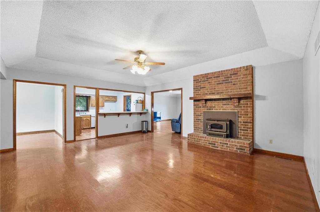 This property has everything for everyone - the acreage, pond and outbuilding for the outdoorsy type. The open floorplan, lots of space and 5 bedrooms for the indoors. Huge stocked pond with dock. 35x40 outbuilding with concrete floor, office, water and electric. Formal dining, living room with fireplace, kitchen and large family room with spacious deck and bedrooms and bathrooms with recent updates on main level. The large lower walkout level is all finished with additional bedrooms, family room and garage. There is so much space and room inside and outside on this amazing property! Do not miss this one! If you're the outdoorsy type, yes, deer hunting from the deck has been done. The pond is stocked with crappie, green sunfish and largemouth bass. Sellers transplanted 12 channel cats from Truman in 2013, and caught all but two back out by 2018. Put in 8 more in 2019 and left them alone. With SW or SE winds (so you're not shooting back at the house), there's good shooting on mid-late season ducks and geese, especially if you keep a hole in the ice. It's small enough sellers used a sump pump secured to a milk crate instead of an ice eater! Come enjoy life on this property!