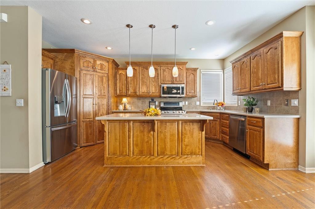 "Motivated Seller offering $10,000 in concessions. Personalize your new home with the finishes and features you love or apply toward closing costs." Step into the soaring entryway that opens to a formal dining room, setting the stage for this spacious and beautifully maintained home. Gleaming hardwood floors lead you into the open kitchen featuring a large island, stained pull-out cabinets, a pantry, and stainless steel appliances. The kitchen flows seamlessly into the inviting family room with a cozy fireplace and expansive windows that fill the space with natural light. Plantation shutters are throughout the main level. Upstairs, the primary suite is a true retreat — complete with a corner jetted tub, separate shower with two shower heads, double vanity, massive walk-in closet, and hidden storage. The second bedroom includes its own private bath, while the third and fourth bedrooms share a Jack-and-Jill style bath with individual vanities and walk-in closets. The laundry room is conveniently located on the second level near all the bedrooms and has waterlines in the cabinet to add a sink. The finished basement offers the perfect entertainment space with a pool table area, wet bar, second living room with fireplace, full bath, and a fifth bedroom with daylight windows. The oversized garage features high ceilings, built-in cabinets and sink, a workbench, extra storage space, and super-quiet garage door openers. Outside, enjoy impeccably maintained landscaping with a lush yard and sprinkler system. 1-year-old class 4 impact-resistant roof! Located close to Garrett Park, award-winning schools, and with easy K-7 highway access, this home truly has it all. Come see this amazing home and “Fall” in love!