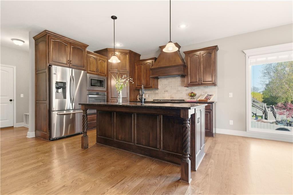 BOM - no fault to the sellers. This has all you need (plus extra) without the wait of a build job. Impeccably Maintained Reverse 1.5-Story Backing to Green Space! This stunning home has been lovingly cared for and offers a spacious, open layout that’s perfect for both everyday living and entertaining. Featuring 4 bedrooms — 2 on the main level and 2 on the lower level—you’ll enjoy flexibility and room to grow. With two living spaces and a bonus area just waiting for all the many uses you will dream of, you will find a perfect layout and one that has received many compliments. The main level boasts a bright, open kitchen complete with hardwood floors, a frig, a walk-in pantry, and convenient main-level laundry tucked behind the kitchen. The expansive great room flows beautifully into the kitchen and dining area, creating a warm and welcoming atmosphere. And, it's perfect for those who want to open up the shades and capture the green space and nature right in your backyard. You can enjoy this lovely view right from your living room, or soak in the view from the deck right off the kitchen. To top off this peaceful atmosphere, enjoy the see-through fireplace both inside and out. Perfect for entertaining as well. Downstairs, the finished basement is an entertainer's dream and includes a wet bar, rec room, and dedicated media room—ideal for movie nights or hosting parties and game nights. You can also use this bonus space for a kids play area as well. Also, off of the family room is another outside space. The covered patio is perfect for more outside enjoyment and added privacy and tranquility. Shall we say - 'great place to put your future hot tub?' ;) Plus, this home also has 2 small storage areas AND that third car garage, adding to the many great features. Call and set up your showing today.