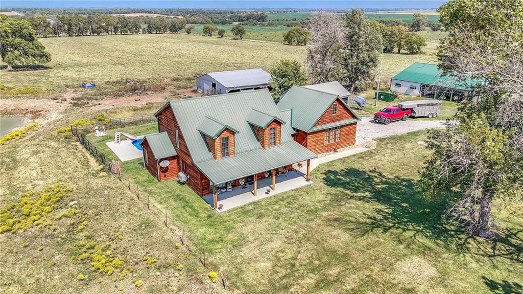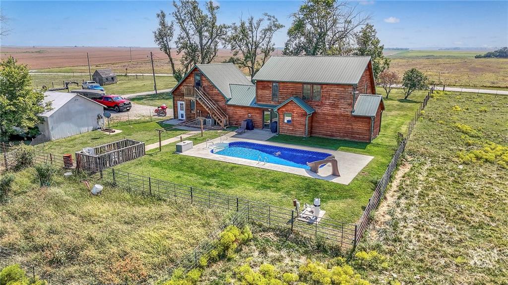 Professional pictures will be uploaded this afternoon. Escape to your own private retreat located on 40 acres, directly off of a paved road. This charming cedar-sided home offers a classic, timeless aesthetic with natural warmth and character, combining the best of country living with a move-in-ready home. Imagine waking up to wonderful views in every direction and ending the day on a spacious 30'x10' covered front porch, enjoying the quiet sitting on your expansive land. This is the perfect setting for those seeking tranquility, privacy, or those who love the great outdoors, whether for farming, equestrian pursuits, or simply relaxing by a bonfire under the stars. Offering 3 bedrooms and 3 bathrooms, wood floors, loft area, unfinished separate office/craft room above the garage, and a 3'-8.5' deep in ground saltwater pool for relaxation! This home has zoned HVAC and a pellet stove for aux heat. Multiple outbuildings offer ample storage and workshop potential, with a 28' x 52' insulated outbuilding which has 220V, 200-amp service, concrete floor, (2) 12'w 10'h doors, and a 10' lean-to as well as four other outbuildings which are 40'x40', 20'x30', 16'x30', & 34'x34'. Acreage is fenced, there is a pipe corral and pipe gates, water is available between ponds and there is water to the outbuildings. The office/craft room is an unfinished room above garage currently used for storage but could easily be finished into livable space. All kitchen appliances stay with the home.