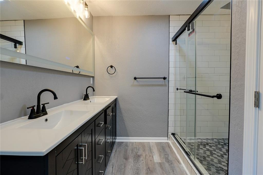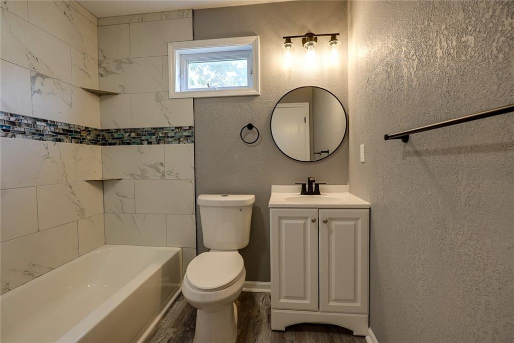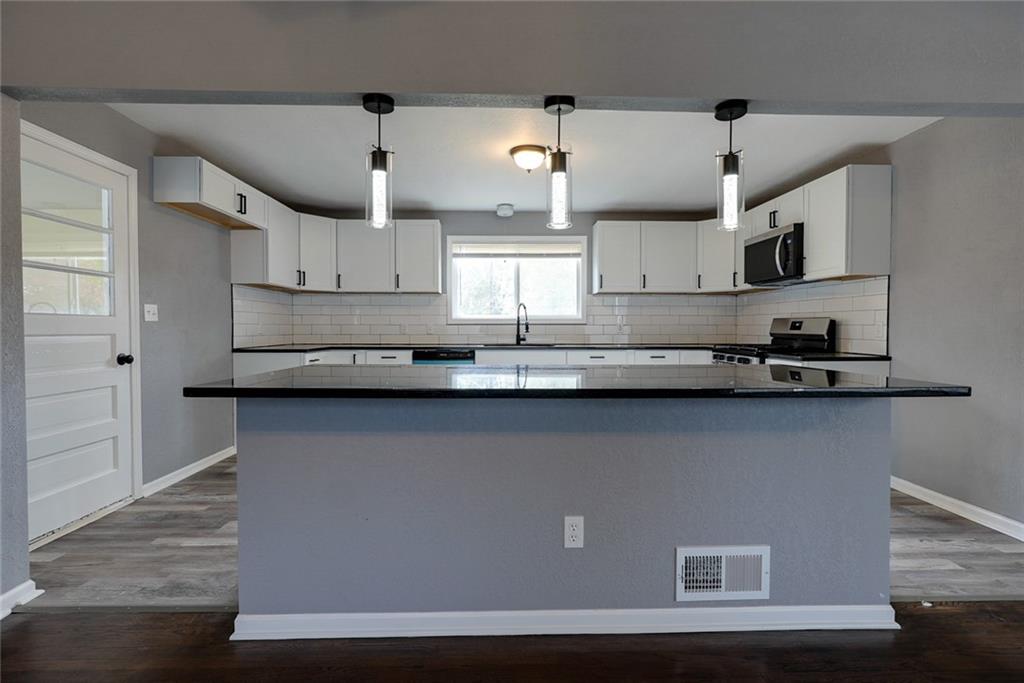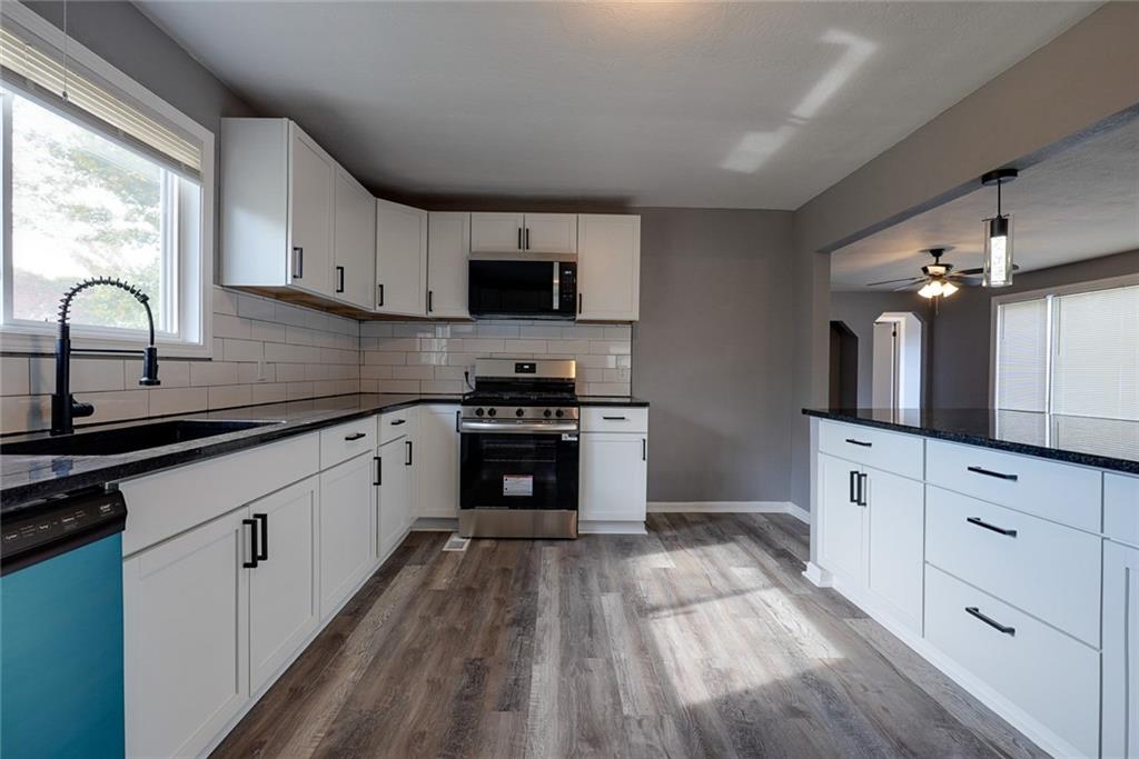 Huge Ranch house in Raytown - 3 bed 2 Full bathroom completely remodeled. Kitchen has all new cabinets w/ granite countertops, huge island between the kitchen and dining room, luxury vinyl plank flooring, subway tile backsplash & all new stainless steel appliances. Master bedroom is huge with a all new master bath w/ beautiful tile work and a walk in shower & nice big closet. Maser bedroom has a deck that walks out to a patio and a huge fenced in back yard. Refinished beautiful hardwood floors throughout most of the house. Ceiling fans in all rooms. House was just painted inside and out. Brand new HVAC(furnace & AC), New hot water tank, several new windows. Full partially finished basement. Big 2 car garage w/openers. Bring your buyers to make this their home. Everything is done for you. Owner agent