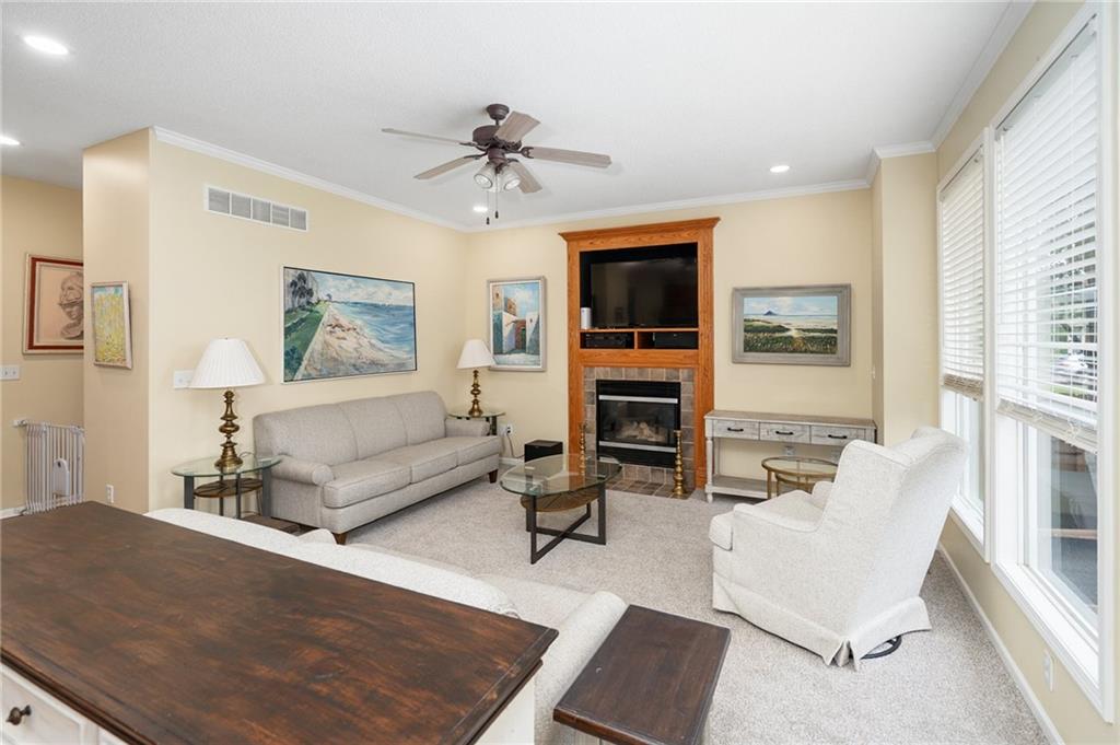 Discover this beautifully maintained home in an unbeatable location close to dining, shopping, and entertainment. The ultra-durable metal roof (installed in 2018) provides both style and peace of mind. SO MUCH NEW...carpet on top two floors, kitchen appliances (range, microwave, dishwasher), added can lights, new deck, gas line for grill and interior paint. Main floor has hardwood floors throughout much of the main level and a thoughtfully designed layout featuring a formal dining room with option office, an eat-in kitchen, and a cozy family room with a fireplace. Upstairs, you’ll find four spacious bedrooms, including an oversized primary suite with a large walk-in closet and dual vanities. The home is equipped with dual wireless thermostats, allowing you to control the temperature on each level with ease. The finished lower level offers even more living space — complete with a wet bar and media room - perfect for entertaining or relaxing. Additional highlights include rain-sensor sprinklers and prepaid lawn care service through the end of the year. Enjoy neighborhood amenities such as a community swimming pool, play area, and scenic walking trails — all in a location that can’t be beat!