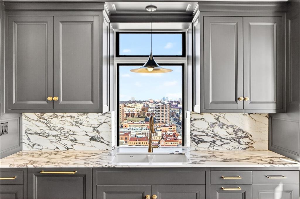 Experience elevated living in this beautifully reimagined 2-bedroom, 2.5-bath condominium perched on the 14th floor of the prestigious Alameda Towers. Every surface has been thoughtfully updated, showcasing impeccable craftsmanship and designer finishes throughout. The completely renovated kitchen is a chef’s dream! It features custom Bryne cabinetry and a one of a kind handcrafted center island featuring marble slab countertops. A 5-burner La Cornue range with double ovens anchors the space, complemented by additional Viking double ovens, making this a true delight for entertaining. The sleek butler’s pantry includes a new ice maker and wine fridge, and a reconfigured layout opens the kitchen to the spacious family room with a custom bar—perfect for entertaining. Fresh paint throughout, including a lacquered Monrose-painted entryway, enhances the sophisticated ambiance. The expansive dining room boasts a new statement light fixture, while the office is bright and functional with built-ins and large windows. The oversized primary suite offers hardwood floors, a completely renovated marble bathroom with mirrored vanities, abundant built-ins, and a massive custom closet. The secondary bedroom also features hardwoods and a newly refreshed en-suite bath with designer fabric walls. A stylish half bath adds both convenience and comfort—perfect for guests. Washer and dryer remain for convenience. Every inch of this residence has been modernized with quality and style—offering an exceptional blend of luxury, comfort, and location just steps from the Country Club Plaza.