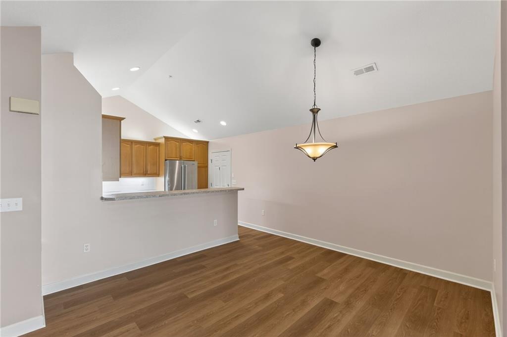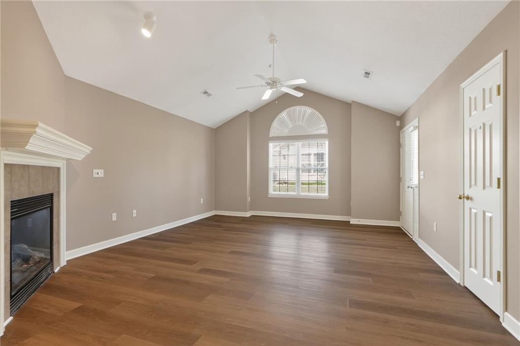 Welcome home to this bright and inviting 2-bedroom, 2-bath villa in the heart of Shawnee. The open floor plan features vaulted ceilings, large windows that fill the space with natural light, and a cozy fireplace in the living room. The kitchen offers plenty of cabinet space, modern appliances, and a breakfast bar overlooking the main living area—perfect for everyday living or entertaining. Both bedrooms are spacious with ample closet storage, and the primary suite includes a double vanity and walk-in shower. Enjoy the convenience of main-level laundry and an attached garage. Located close to shopping, dining, and parks, this home combines comfort and convenience in a quiet, low-maintenance community.