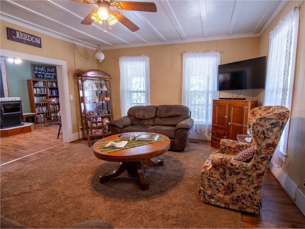In-Town Acreage! You will find farmhouse country charm and in-town convenience on this unique property with endless possibilities. Set on a couple of acres, this home offers room to grow, create, and live your homesteading dreams — right inside city limits. Inside, you’ll find a cozy wood-burning stove, a formal dining room, a spacious eat-in kitchen with a generous pantry, and a main-floor bedroom, bathroom, laundry room, and even a mudroom. There’s also a flexible space that could be used as a home office or bonus room, perfect for remote work or hobbies. The attached oversized one-car garage provides extra space for storage or tools, and makes bringing in groceries or loading the car a breeze in any weather. But the real standout features are the two large outbuildings — ideal for workshops, storage, or creative projects. One is a stunning three-level historic barn from the 1800s, adding unmatched farmhouse style and character! The home features recent updates including energy-efficient windows and a brand new roof installed this year, so it is ready to continue serving as a home to make memories in for many years to come. This property is a homesteader's dream, with fruit trees, large garden spaces, and rainwater catchment systems in place for sustainable living. While the home is on city water, a functional well remains on the property, providing a valuable backup. Whether you're looking to start a small farm, set up a workshop, or simply enjoy space and privacy with the conveniences of town nearby, this property offers rare opportunity and flexibility to make dreams into reality.