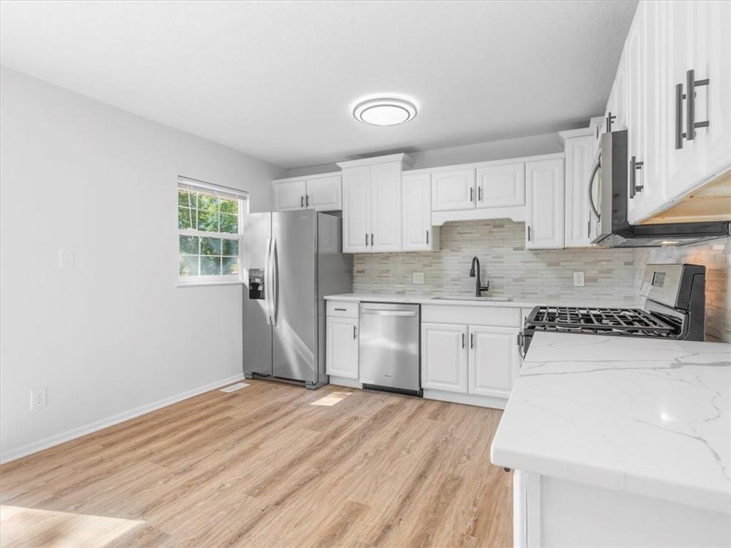 Beautifully updated and move-in ready, this spacious ranch has room for everyone. The main level features three bedrooms, two and a half baths, a bright living room, and an eat-in kitchen with stainless steel appliances and access to a brand-new back deck. Downstairs, the finished basement includes a fourth non-conforming bedroom, a rec room with a wet bar, and large storage space. The fenced backyard, new roof, and one-car attached garage with both main-floor and basement entry add practicality to this stylish home.