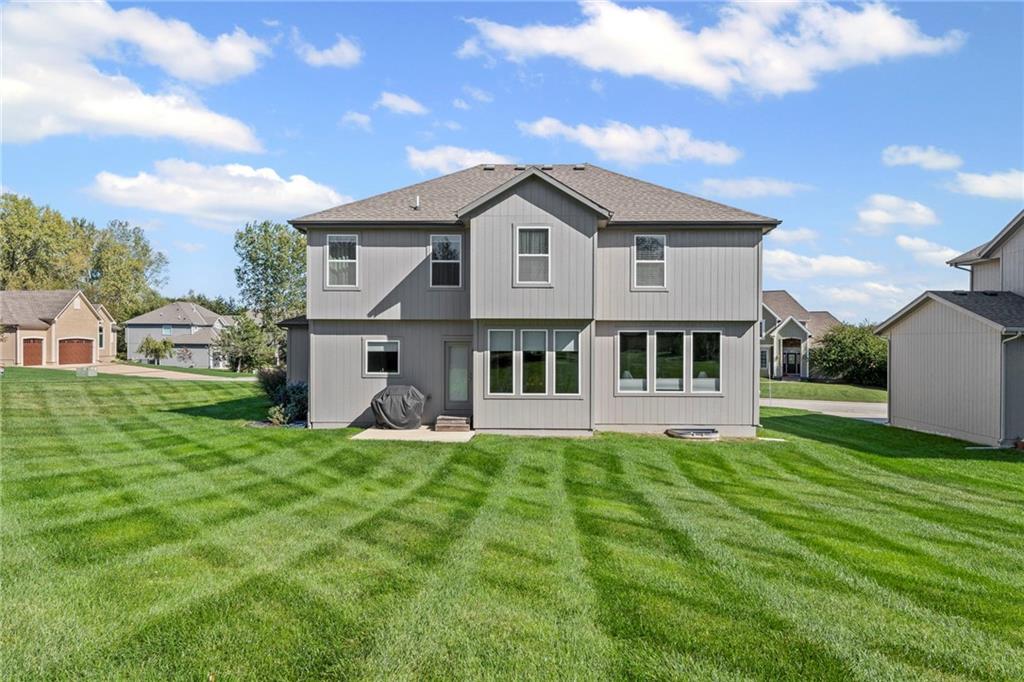 Spacious 4-Bedroom Home on a Large Corner Lot with Modern Upgrades! This stunning 4-bedroom, 2.5-bathroom home offers the perfect blend of style, functionality, and comfort. Situated on a large corner lot, it features a huge backyard complete with a covered firepit ideal for entertaining or relaxing outdoors. Natural light fills the open floor plan, highlighting gorgeous hardwood floors and seamless spaces designed for easy living. The heart of the home is the large kitchen, a generous island, walk-in pantry, and plenty of storage for all your culinary needs. The gas fireplace adds warmth and charm to the living area, while the thoughtfully designed mudroom with built-in desk keeps life organized. Beautiful main-level office featuring elegant French doors and large windows that fill the space with natural light—perfect for working from home or managing daily tasks in comfort and style. Laundry is conveniently located to serve all bedrooms, and the spacious primary suite includes a large walk-in closet. Additional highlights include a 3-car garage, sprinkler system to maintain a beautiful yard, and an unfinished basement offering ample storage or potential for a custom living space. Fresh exterior paint in 2024 completes the picture, making this home move-in ready and full of appeal. Enjoy a home where every detail is designed for comfort, convenience, and style!