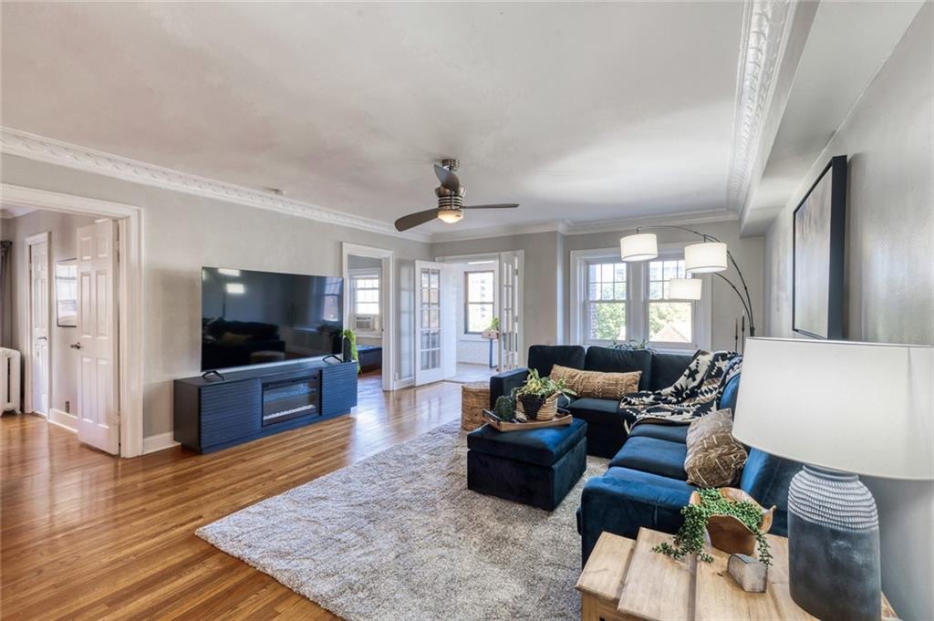 THIS BRIGHT AND SUNNY TWO BEDROOM, OPEN FLOOR PLAN IS LOCATED on the 5th floor of the iconic Eugene Fields, one of the famed buildings comprising the stately "Poet apartments" on the Country Club Plaza built between 1927 & 1929 & named after famous literary figures, in this case, the Missouri-born children's laureate. The unit looks out over a park with views of the west side of the Plaza. This unit represents an exciting & affordable opportunity to be located on the Plaza which has new ownership and one of the 2 newly planned restaurant districts on the Plaza will be a half block away from the front door. Ideal either for the first time buyer or a pied-a-terre or as an investment property. THE SELLER HAS FURNISHED THE UNIT AND BUYER CAN PURCHASE THE FURNISHINGS OR USE AS A FURNISHED APARTMENT RENTAL. This charming condo is already in a prime location with conveniences that will only get better.