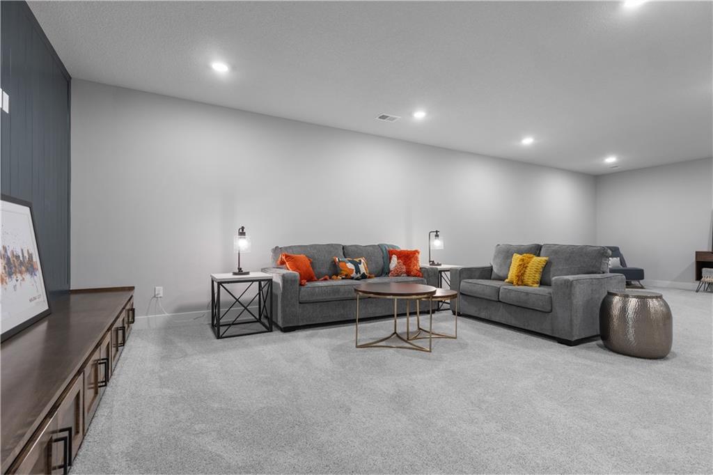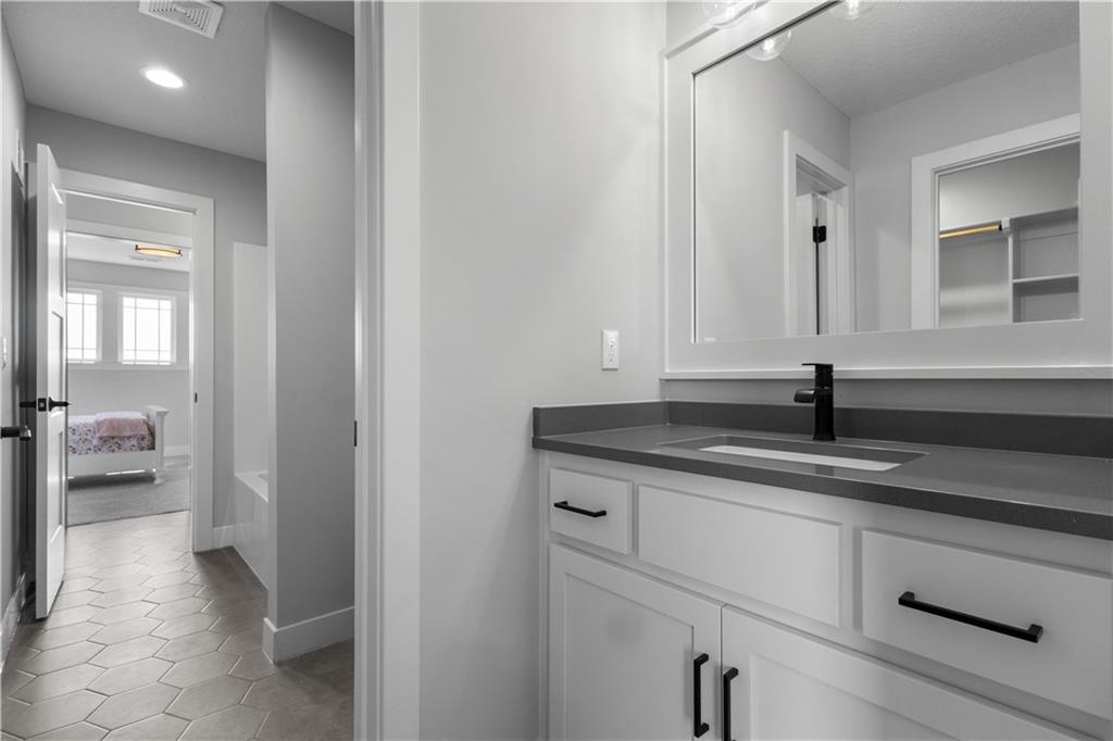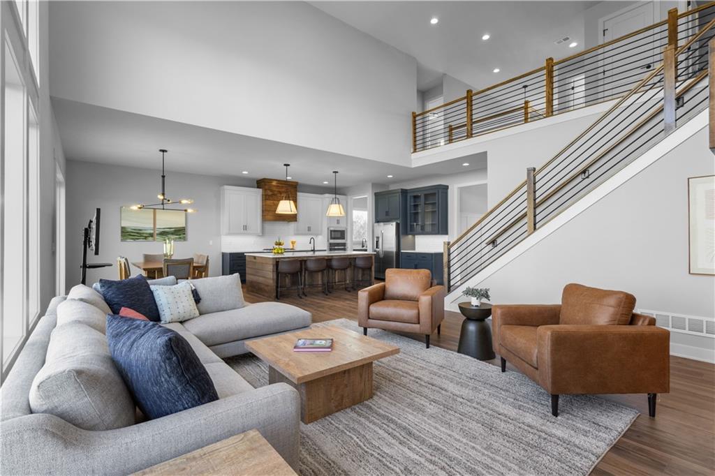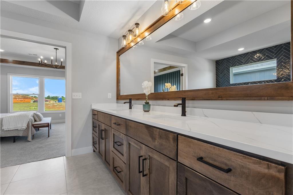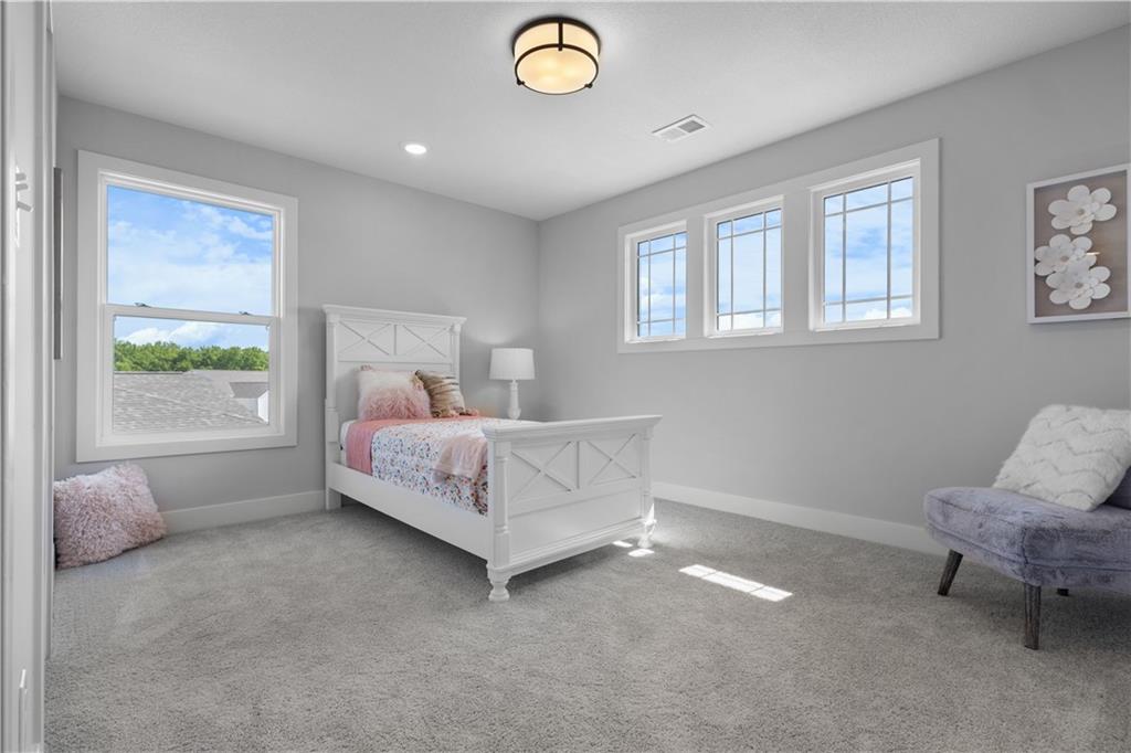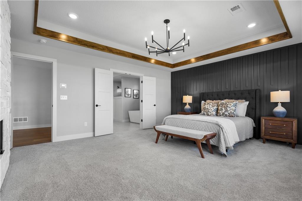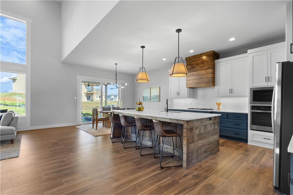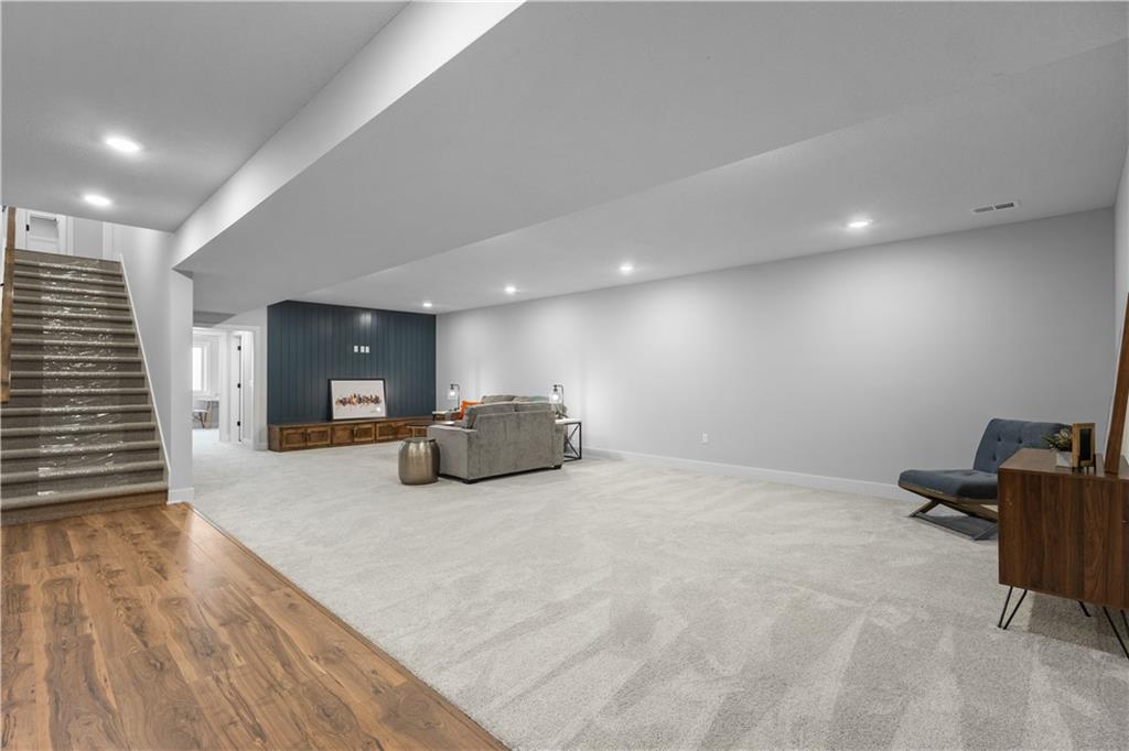 Welcome to The Opus II — a modern farmhouse masterpiece blending timeless charm with sophisticated design. This stunning home features six spacious bedrooms, five full baths, and a dedicated main-floor office, offering the perfect balance of comfort and versatility. The chef-inspired kitchen is the heart of the home, showcasing stunning quartz countertops, an L-shaped prep kitchen, and rose gold cabinet hardware that adds a touch of modern glamour. A convenient boot bench with drop zone keeps daily life organized, while the extended three-car driveway provides both practicality and curb appeal. The great room impresses with a floor-to-ceiling stone fireplace and elegant built-in cabinetry with floating shelves, creating a warm and welcoming focal point. Throughout the home, the modern trim package, wainscoting, and sleek black interior hardware elevate every detail with refined style. Downstairs, the finished lower level is designed for entertaining, complete with a wet bar peninsula, full-sized refrigerator, and an additional bedroom and full bath. Every element of The Opus II reflects thoughtful craftsmanship and luxurious comfort—perfectly suited for both lively gatherings and peaceful everyday living.