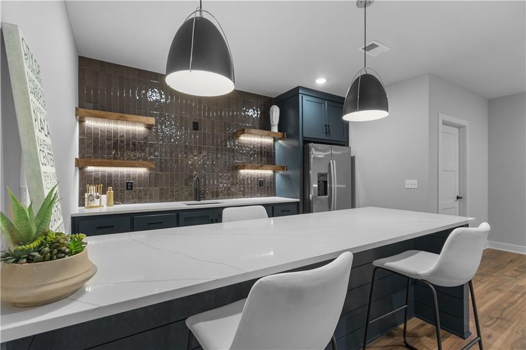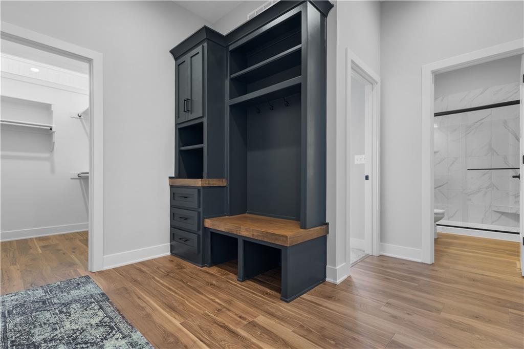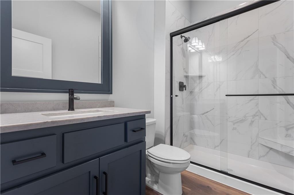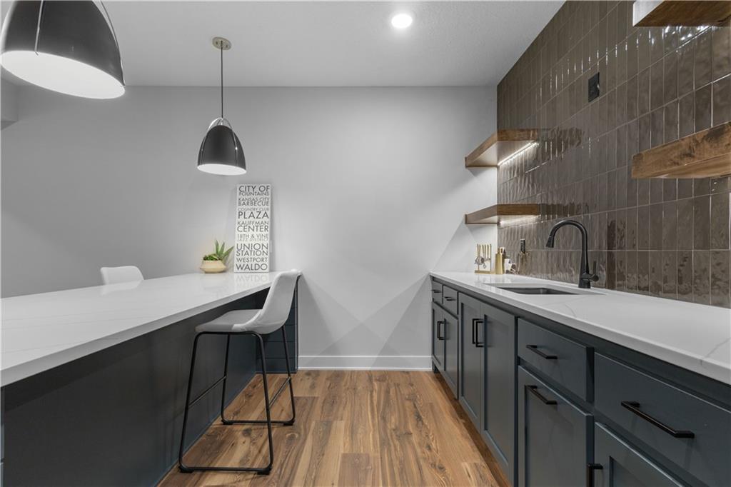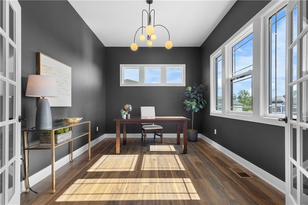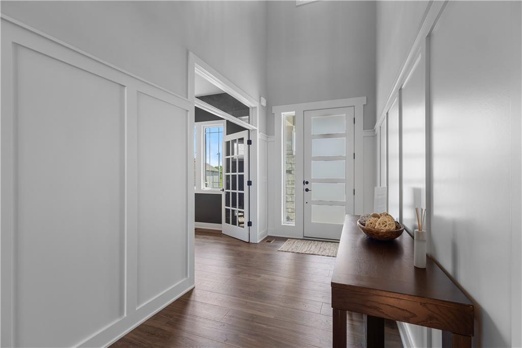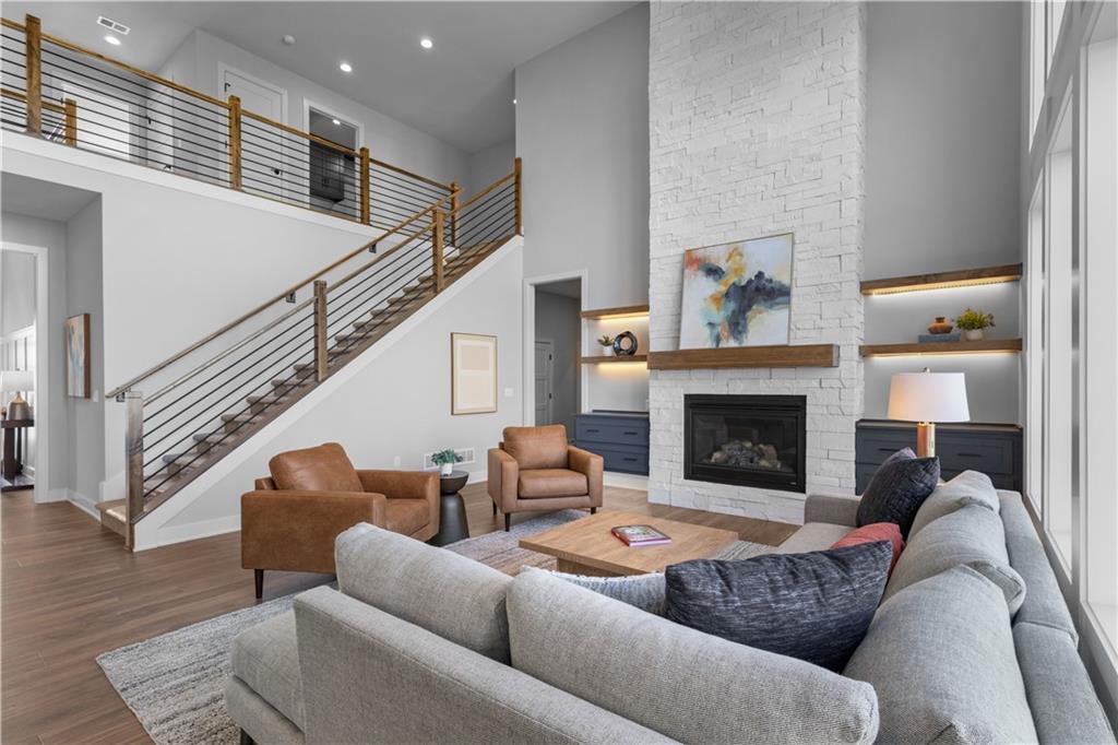Welcome to The Opus II — a modern farmhouse masterpiece blending timeless charm with sophisticated design. This stunning home features six spacious bedrooms, five full baths, and a dedicated main-floor office, offering the perfect balance of comfort and versatility. The chef-inspired kitchen is the heart of the home, showcasing stunning quartz countertops, an L-shaped prep kitchen, and rose gold cabinet hardware that adds a touch of modern glamour. A convenient boot bench with drop zone keeps daily life organized, while the extended three-car driveway provides both practicality and curb appeal. The great room impresses with a floor-to-ceiling stone fireplace and elegant built-in cabinetry with floating shelves, creating a warm and welcoming focal point. Throughout the home, the modern trim package, wainscoting, and sleek black interior hardware elevate every detail with refined style. Downstairs, the finished lower level is designed for entertaining, complete with a wet bar peninsula, full-sized refrigerator, and an additional bedroom and full bath. Every element of The Opus II reflects thoughtful craftsmanship and luxurious comfort—perfectly suited for both lively gatherings and peaceful everyday living.