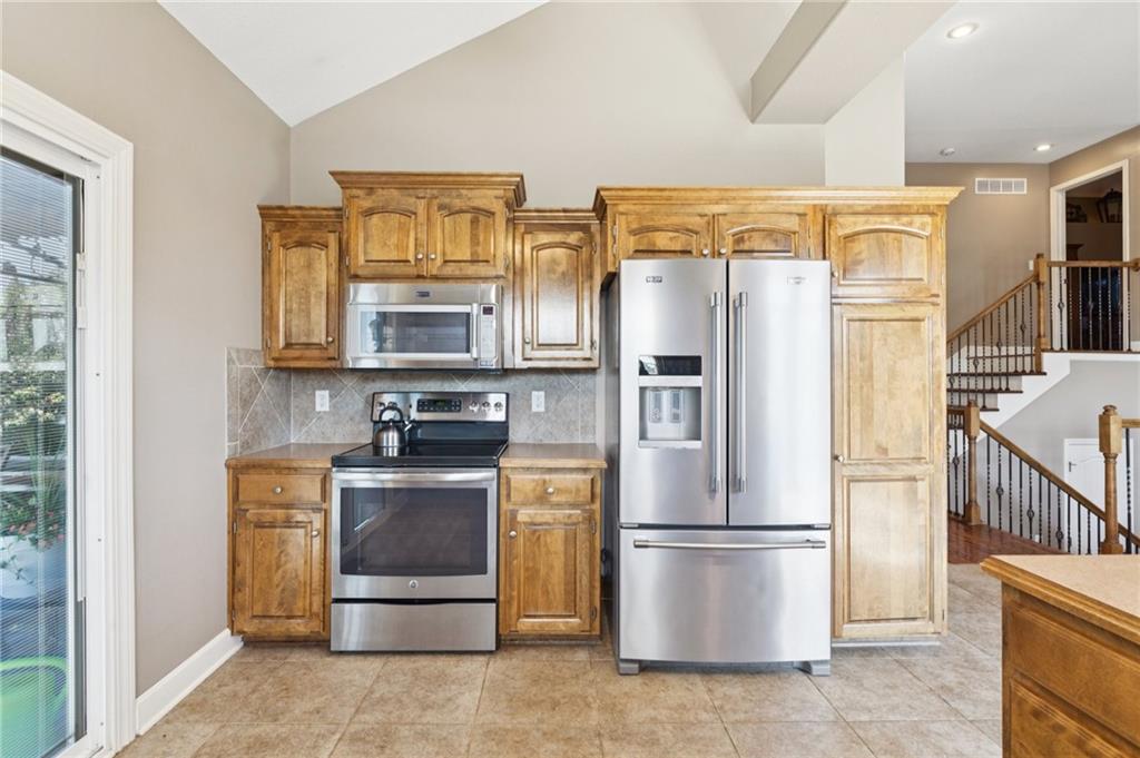 This spacious 2,700+ sq. ft. floor-plan offers the flexibility and room today’s buyers are looking for! Featuring 4 bedrooms, 3 full baths, two living areas, and a 3-car garage, there’s space for everyone to spread out and enjoy. Recent updates include an HVAC system less than 3 years old, roof is 4 years old, and tinted windows on the front and back for added energy efficiency and privacy. Step inside to a vaulted living room with hardwood floors, fireplace, and built-ins. The kitchen boasts newer stainless appliances (refrigerator stays), an eat-in dining area, and access to the deck with covered gazebo—perfect for outdoor entertaining. First and second floors include two bedrooms, a full bath, and a primary suite with vaulted ceiling, dual vanity, walk-in closet, jetted tub, and separate shower. Laundry is conveniently located on this level, with washer and dryer included. The walkout basement provides even more living space with a family room, full bath, and additional bedroom—plus a sub-basement offering ample storage. Enjoy the flat, fenced backyard complete with shed, patio and fire pit. Car enthusiasts will love the 3-car garage, finished with epoxy floors, sink, refrigerator, storage area, and a heating unit for year-round comfort. Located in a highly rated Kearney School District, the neighborhood includes a community pool and nearby elementary school, with quick access to groceries, restaurants, and highways. This home checks all the boxes—space, location, and value! Don’t wait to make 904 Crestridge Drive your new home.
