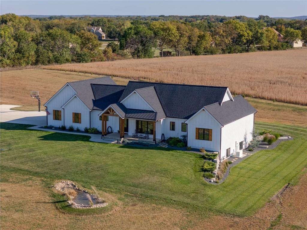 Stunning custom home offering the beauty of country living with all the amenities of the city just minutes away. These owners meticulously designed this to be their forever-dream home however work relocation has created an opportunity for new owners to enjoy this like-new property without all the stress of building. Located on a private culdesac with 4 bedrooms, 3.5 baths, 4325 SQFT, office, 3-season room with fireplace, game room, finished basement, walk-in pantry, and a laundry room on both floors. Vaulted ceilings, 7' doors, large kitchen island with built-in sonic ice machine, custom cabinets, GE Cafe appliances, main level primary suite with heated bathroom floors, heated wet room/shower with tub, and large closet with built-ins. Finished daylight basement with family room, 2 bedrooms, wetbar, and lots of storage. Enjoy low utility costs due to a geothermal heating/cooling system and spray foam insulation. Also included is a whole-house backup natural gas generator. Outside features include an irrigation system, 250 foot paved driveway, security cameras, 3-car garage with a min-split heating & cooling system and water fountain. There is also a gravel pad with utilities ready for the addition of an outbuilding. This is truly a must see home, schedule your private showing today!