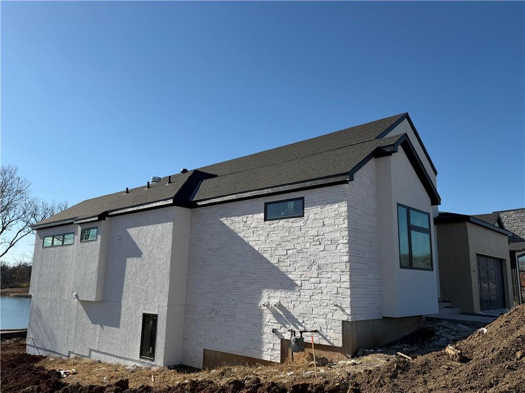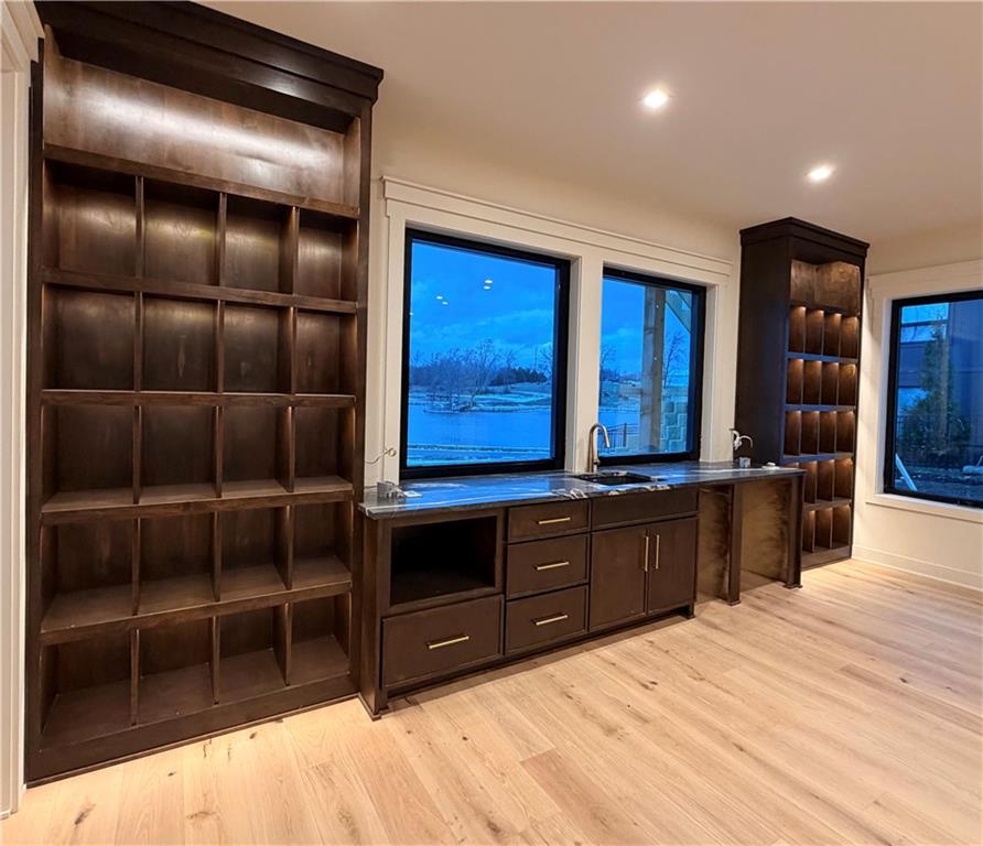WaterCrest Landing | Sunset Views. Elevated Living. LUXURY REDEFINED - GOLF SIMULATOR - BACKS TO WATER - Exquisite new construction by Spiess Custom Homes in the coveted WaterCrest Landing. This masterpiece offers the perfect blend of modern luxury and functional design, backing directly onto the community pond with a desirable flat lot ideal for a future pool. Soaring ceilings and expansive windows frame breathtaking views from every angle. The main level showcases ultimate convenience with a private primary bedroom suite and a separate, secondary bedroom quarter with full bath, perfect for guests or multi-generational living. The true entertainer's dream awaits on the walk-out lower level. This space is unparalleled, featuring a state-of-the-art Golf Simulator, a full professional bar, and a direct walk-out to a covered patio with stunning water views. Car enthusiasts will appreciate the oversized 3rd-car garage providing ample space for toys and storage. Luxurious, top-tier finishes throughout—where style meets everyday living. This is more than a home; it's a lifestyle.