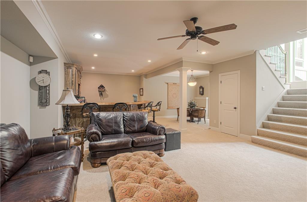 Beautiful Reverse 1.5 Story home in Heather Glen, Maintenance provided community on a cul-de-sac lot. Meticulously maintained!! Upon entering the home you'll be greeted with tall ceilings throughout the main level, 2 Story windows in the great room and stunning crown moulding throughout. In the kitchen you will find hard wood floors, custom cabinets with granite counters, a gas range. Stunning crown moulding throughout, plantation shutters on the windows, a true dining room and a breakfast area. The sellers have added an all seasons room with AC/Heat year round. The primary bedroom features separate owners closets, double vanity, toilet room, soaker tub and shower. The lower level features a recreation room with walk out to patio and yard, full bar, the third bedroom and full bathroom. Large unfinished area for ample amounts of storage. 3 car garage with epoxy flooring.