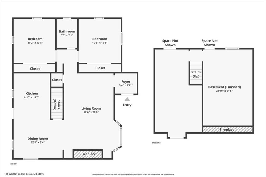 This charming all-brick home in Oak Grove Missouri sits on a spacious ½-acre lot that backs to mature trees, offering both privacy and room to relax. With 893 square feet on the main level plus a nearly finished basement, the home feels larger than expected and has a great flow throughout. Inside, you’ll love the beautiful new flooring, the modern electric fireplace in the living room, and the surprisingly spacious bedrooms for a home of this size. The basement offers additional living space — ideal for a game room, bar area, or cozy hangout spot. Its distinctive fireplace with built-in seating adds a unique touch and plenty of character. Exterior improvements include a newer roof, block retaining wall with paver-stone stairs, an upgraded drainage system, and a brand-new septic. Nearly every part of this home has been refreshed, making it an incredible value in today’s market. With its thoughtful updates, warm character, and large backyard surrounded by woods, this property offers an inviting blend of comfort and charm you’ll want to experience in person. Square footage is from public record; buyer to verify. Basement is nearly finished and not included in the total square footage.