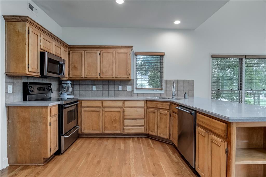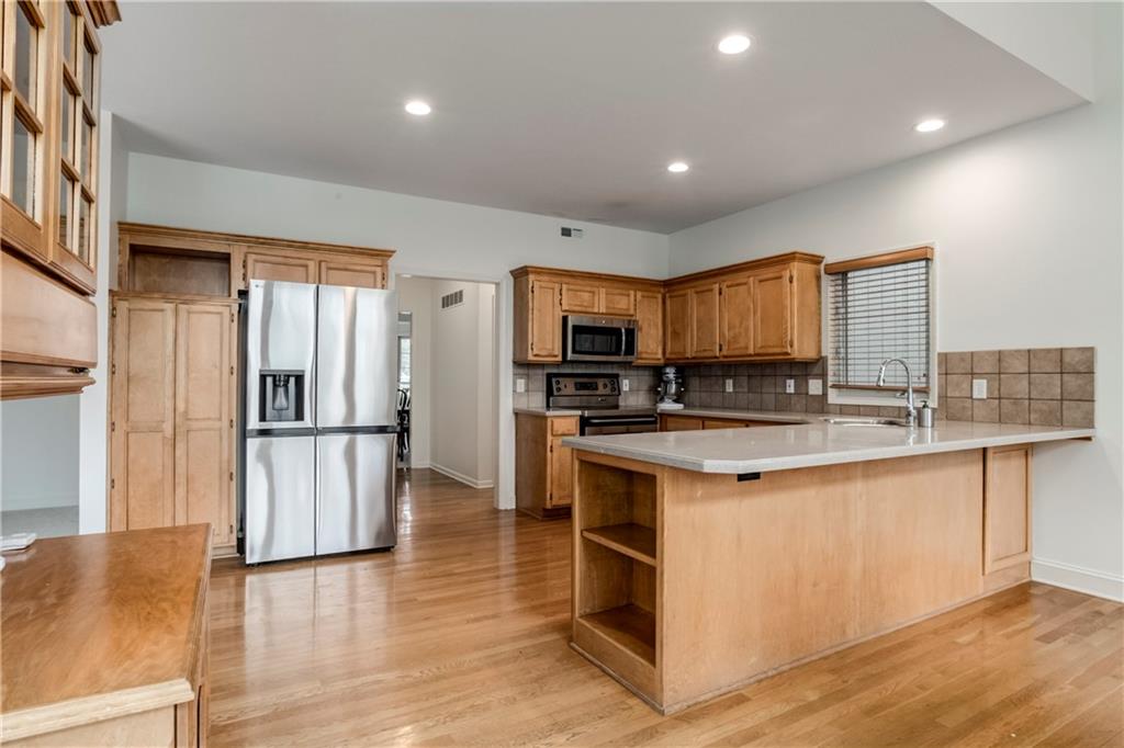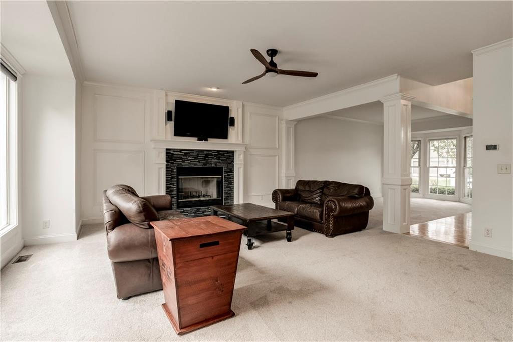 Situated on a corner lot in Brookhollow, this two-story home blends timeless design with modern updates and neighborhood convenience. A bright two-story foyer opens to formal dining and an inviting living area with a fireplace and backyard views. The open-concept kitchen features a large island, tile backsplash, and new stainless appliances (2025). Fresh interior paint (2025) and new carpet (2025) add a clean, move-in-ready feel throughout. The primary suite includes a bonus office / sitting area with its own fireplace, ideal for remote work or quiet retreat. The primary bath offers dual vanities, a soaking tub, and separate shower. Three additional bedrooms and two full baths complete the upper level. A new roof (2025) and new HVAC (2024) provide peace of mind, while the three-car attached garage offers plenty of parking and storage. The unfinished basement presents future expansion options for fitness, recreation, or storage. Step outside to a fully fenced backyard designed for outdoor enjoyment, featuring a spacious deck overlooking a center fire pit—perfect for gathering under the stars. Located within the Blue Valley School District, this home offers easy access to parks, shopping, dining, and Highway 69. Enjoy local favorites like Starbucks (0.8 mi), Deanna Rose Children’s Farmstead (1.3 mi), and Scheels Overland Park Soccer Complex (1.5 mi). Don’t miss this well-maintained Brookhollow property combining comfort, function, and recent updates—all in one desirable Overland Park location.