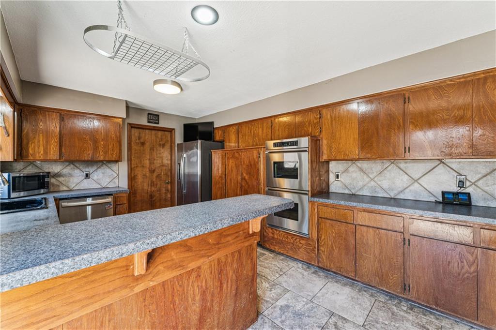This is the one the internet is about to lose its mind over. Nestled in the beloved Quivira Woods community, this stunning 1.5-story SINGLE home blends contemporary charm with timeless traditional warmth, offering 4 bedrooms, 2.5 bathrooms, and a rare 3,120 total square feet of beautifully designed living space (including 2,133 above grade and 987 finished in the lower level). Sitting proudly on a massive 20,999 sq ft lot, this property gives you the kind of space, privacy, and freedom that today’s buyers crave—room for gardens, dogs, outdoor dining, kids’ adventures, or simply a quiet sanctuary at the end of a busy day. Built in 1978 and thoughtfully updated, the home welcomes you with wood shingle roofing, stone-and-frame exterior character, and warm curb appeal that feels instantly comforting. Inside, natural light spills across open living spaces, including a cozy hearth-room fireplace that sets the tone for coffee mornings, connection, and calm. The eat-in kitchen and formal dining room create the perfect rhythm for daily life—easy, intuitive, and ideal for hosting holidays, dinner parties, or Sunday brunch with your favorite people. With a main-floor primary suite, this home adapts beautifully to your lifestyle, your creativity, and your next chapter. The finished basement adds even more versatility—movie room, play space, home office, guest retreat, craft studio, a den/study, family room, exercise room, a full workshop, or entrepreneurial HQ. Outside, the fenced yard, lush tree canopy, give you SERENITY rarely found in such a desirable location. With central air, an attached 2-car garage, OVERSIZED DRIVE, main-level laundry, and a layout designed for comfort and flow, this home delivers everything today’s buyers scroll for—and stop for. Located within the highly rated De Soto School District (Riverview Elementary, Monticello Trails Middle, Mill Valley High), this Quivira Woods standout promises warm community!