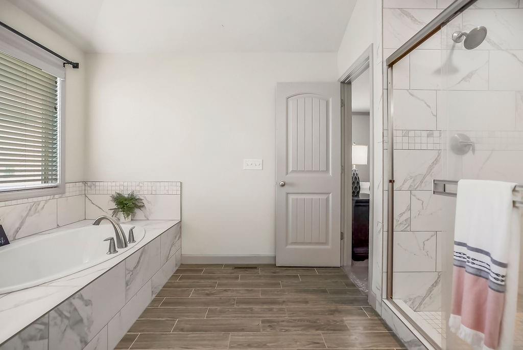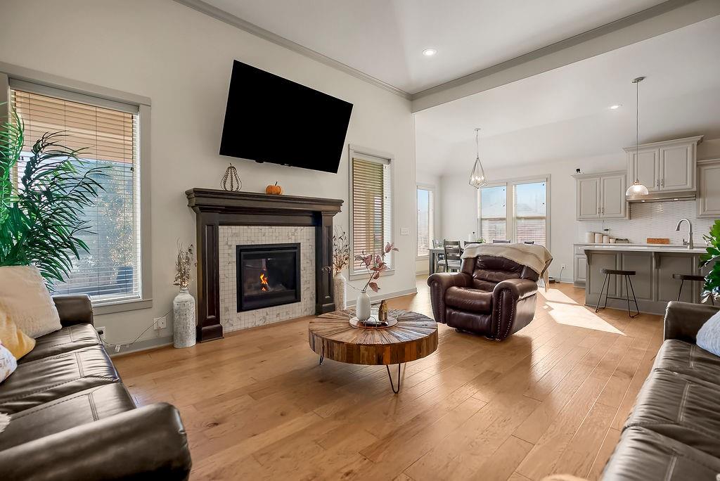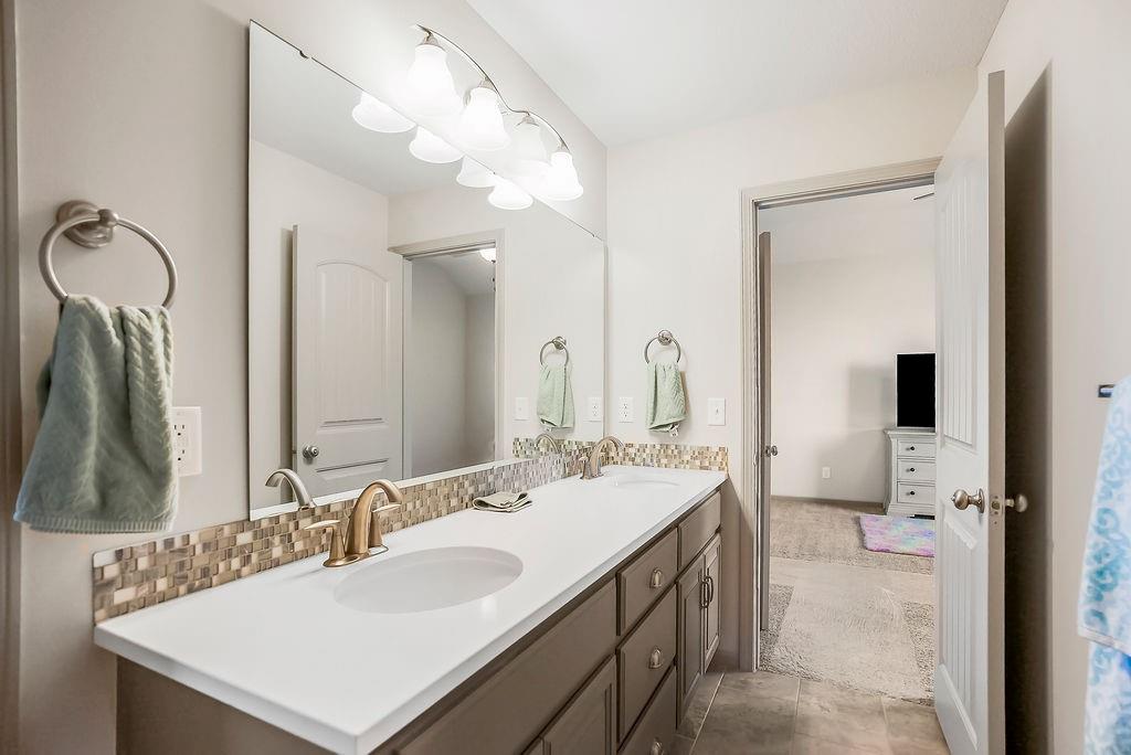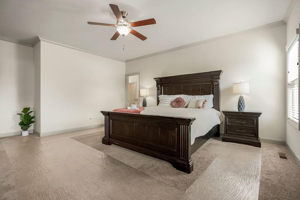 Welcome to this beautifully cared for Cherry Creek II 1.5 story home, tucked within the highly sought after Ridgewood Place at Chapman Farms community. From the moment you arrive, you can feel how much pride and attention has gone into maintaining this home. Step inside and you’re greeted by soaring vaulted ceilings and rich wood flooring that give the great room an inviting, open feel. The main level offers a seamless flow, connecting the living space to a bright kitchen and cozy breakfast area where morning coffee feels just a little sweeter. The dining room, which can easily serve as a home office, adds versatility to the layout.The main level master suite offers the perfect retreat, complete with a luxurious bath featuring a soaking tub and walk in shower. Upstairs, you’ll find three more spacious bedrooms, one with its own private bath and two sharing a convenient Jack and Jill setup, ideal for family or guests. Step outside to a covered 19x10 patio overlooking a well kept yard, perfect for relaxing evenings or weekend gatherings. The backyard also features a fenced area, an L shaped vegetable and fruit garden (approximately 12x7), and several planted fruit trees you’ll enjoy for years to come. Enjoy the large unfinished basement that can be used for storage, a rec room, or easily finished later with the already set up plumbing for a full bath, kitchenette, and bedroom, giving you plenty of options to expand your living space. The home has been professionally power washed, refreshed with new mulch and interior paint, had the carpets professionally cleaned, and is truly move in ready. With an irrigation system, security system, and a 10 year builder warranty, every detail has been thoughtfully cared for. This isn’t just a house, it’s a home that’s been loved, maintained, and ready to welcome its next chapter. You won’t want to miss how beautifully this home has been maintained inside and out.