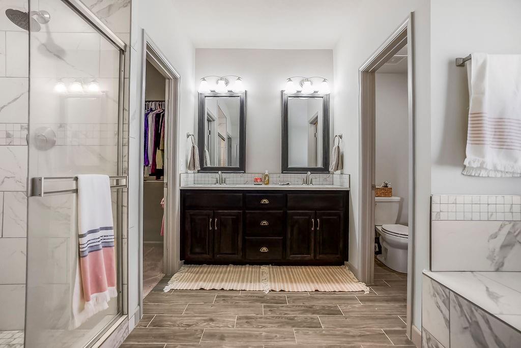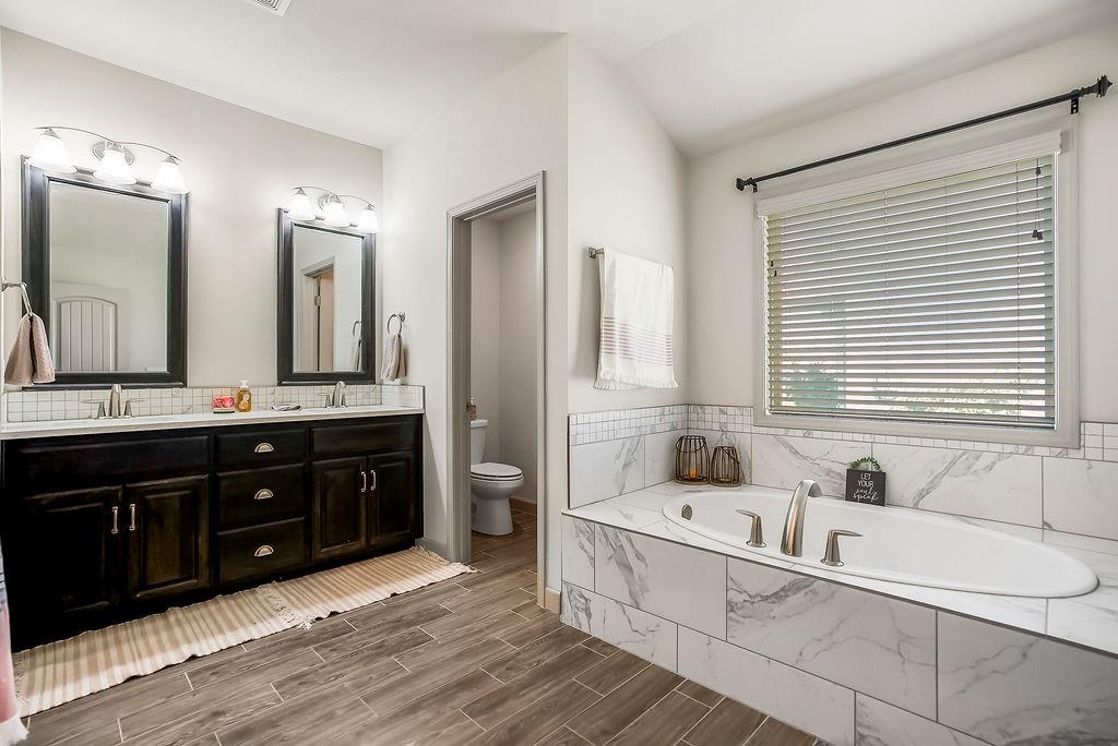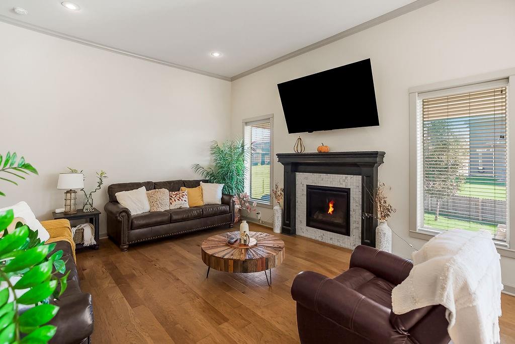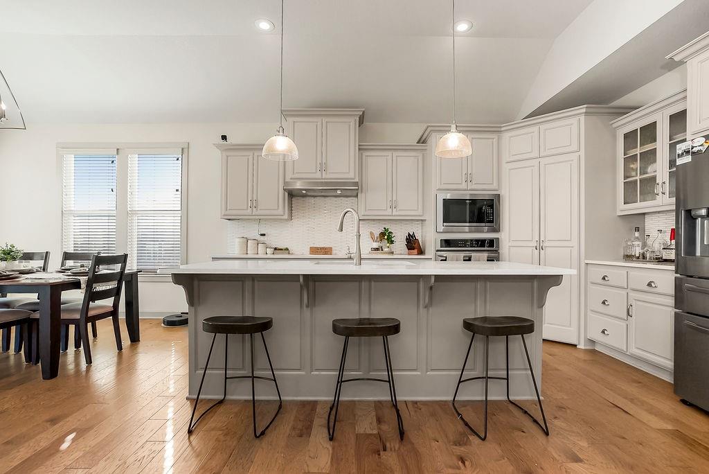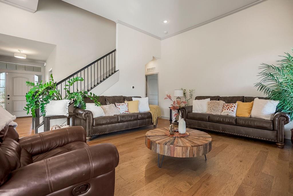Welcome to this beautifully cared for Cherry Creek II 1.5 story home, tucked within the highly sought after Ridgewood Place at Chapman Farms community. From the moment you arrive, you can feel how much pride and attention has gone into maintaining this home. Step inside and you’re greeted by soaring vaulted ceilings and rich wood flooring that give the great room an inviting, open feel. The main level offers a seamless flow, connecting the living space to a bright kitchen and cozy breakfast area where morning coffee feels just a little sweeter. The dining room, which can easily serve as a home office, adds versatility to the layout.The main level master suite offers the perfect retreat, complete with a luxurious bath featuring a soaking tub and walk in shower. Upstairs, you’ll find three more spacious bedrooms, one with its own private bath and two sharing a convenient Jack and Jill setup, ideal for family or guests. Step outside to a covered 19x10 patio overlooking a well kept yard, perfect for relaxing evenings or weekend gatherings. The backyard also features a fenced area, an L shaped vegetable and fruit garden (approximately 12x7), and several planted fruit trees you’ll enjoy for years to come. Enjoy the large unfinished basement that can be used for storage, a rec room, or easily finished later with the already set up plumbing for a full bath, kitchenette, and bedroom, giving you plenty of options to expand your living space. The home has been professionally power washed, refreshed with new mulch and interior paint, had the carpets professionally cleaned, and is truly move in ready. With an irrigation system, security system, and a 10 year builder warranty, every detail has been thoughtfully cared for. This isn’t just a house, it’s a home that’s been loved, maintained, and ready to welcome its next chapter. You won’t want to miss how beautifully this home has been maintained inside and out.