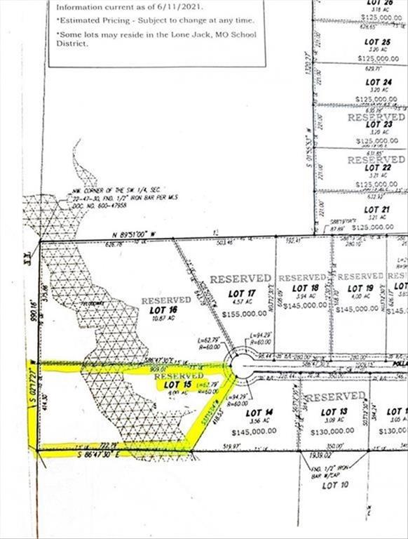 Tucked away at the end of a quiet cul-de-sac, this breathtaking 8-acre parcel offers a rare blend of open space, mature trees, and natural privacy, an ideal canvas for your vision! Gently rolling land unfolds into a beautiful mix of cleared pasture and wooded serenity, with a winding creek adding both charm and a peaceful, retreat-like feel. The aerial views showcase endless possibilities for a custom home site perfectly positioned to capture the surrounding countryside, while still allowing room for trails, outbuildings, or simply wide-open space to enjoy. Conveniently located near 50 Highway, this property provides effortless access to Lee’s Summit and the greater Kansas City metro, making everyday errands and dining just minutes away while still feeling worlds apart. Whether you’re dreaming of a private estate, a nature-inspired escape, or a long-term investment with flexibility, this exceptional acreage offers the space, setting, and location to bring it all to life.