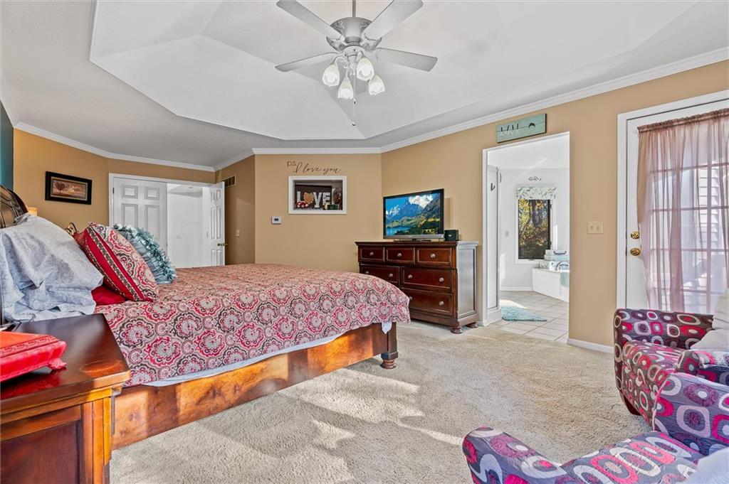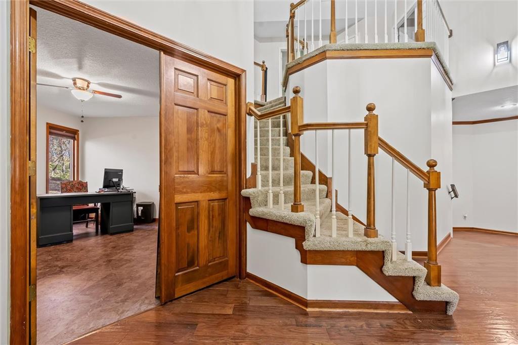 Welcome to this Picture-Perfect home, nestled in a park like setting on 3.35 acres. This 4-bedroom 4bath home is located in the highly sought-after Kearney School District. The extra-large kitchen is a chefs dream with a gas/electric range and two ovens. Above and under cabinet lighting shows off the beautiful cabinetry. Enjoy hosting family and friends in the formal dining room with a pass through from the kitchen. A cozy fireplace calls the living room home. The oversized master suite includes a large walk-in closet, double sinks, shower and a jacuzzi tub. Bring the family to stay in the two additional bedroom suites each with a full bath and walk in closet. This home boasts with an abundance of natural lighting. Entertaining is made easy in one or both of the screened in porches or on the extra-large deck. An oversized double car garage in the front, a full concrete basement with workshop and third garage leads to a second driveway. Storage was a priority when designing this custom-built home with a unique floor plan. New roof, new gutter and new paint. This home won't last long.