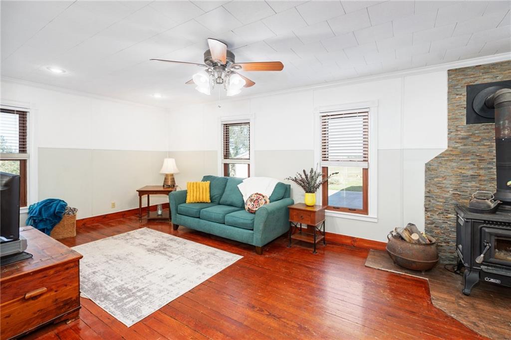 Peaceful Country Home on 12 Acres - Welcome to Heartsong Hollow Farm — a beautiful 5-bedroom home tucked just a quarter mile off the blacktop, offering peace, privacy, and open country views in every direction. You’ll love the character of this early 1900s farmhouse, where much of the original trim, wood floors, and a few stunning stained-glass windows are still intact. The home has seen plenty of updates too, including all new windows, an updated kitchen, and wiring with a manual transfer switch and outdoor power inlet for a portable generator. The spacious three-car attached garage includes one 12’ door plus two standard doors, along with an attached carport. There’s also a separate two-car detached garage that’s perfect for a workshop, hobby space, or extra storage. The barns are thoughtfully set up for livestock and horses, complete with stalls, turnouts, a tack room, water, and electric. The third barn is ideal for hay storage from your very own pasture and equipment storage, with plenty of room for your animals to roam in the fenced pastures. Surrounded by picturesque farmland, this property offers that rare blend of peaceful country living with all the space you need to grow, create, and make it your own. 1/2 mile from Ottawa. Close to schools, shopping, and health care. Easy access to Interstate 35 & US 59 Hiway