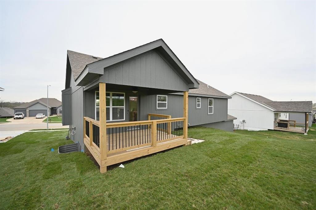 Stunning Custom Home with Modern Features and Inviting Spaces Welcome to your dream home! This exquisite property showcases an open floor plan, ideal for both entertaining and everyday living. The elegant kitchen boasts pristine white granite countertops, custom cabinets, and stainless steel appliances, all seamlessly flowing into the spacious living area centered around a beautiful fireplace. Step outside to discover a covered deck complete with a fan and light, perfect for enjoying serene views of the adjacent pasture. The rich feel of this home is accentuated by LVP throughout and vaulted ceilings enhancing the sense of space and light. The laundry room features stylish tile, while two generously-sized guest bedrooms offer plush carpeting, ceiling fans, and trey ceilings, creating a comfortable retreat for family and friends. The guest bath is tastefully designed, highlighting a tiled tub and a marble vanity that exudes luxury. Retreat to the master bedroom, a good-sized haven with carpet, a ceiling fan, and sophisticated trey ceilings. The walk-in master closet provides ample storage, while the en-suite master bath features elegant tile flooring, a double vanity with sleek black faucets, and a spacious tiled shower. The lower level invites you to enjoy a large fourth bedroom, complete with carpeting and a ceiling fan, alongside a substantial family room perfect for movie nights. The additional full bath boasts a tiled floor and a shower for convenience. Completing this remarkable home is an oversized three-car garage, providing plenty of space for vehicles and storage. The front of the house is adorned with beautiful stone, adding to the curb appeal with shutters to boost the look. Don’t miss the opportunity to make this luxurious yet inviting home your own! SIMULATED PHOTO'S NEW ONES COMING SOON - THE POND IS STOCKED FOR FISHING