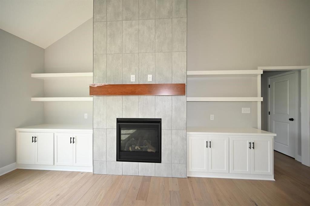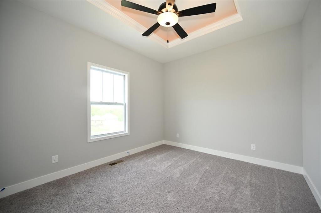 This beautiful home features a range of custom amenities that enhance both functionality and style. The heart of the home features a stunning kitchen with custom white cabinets, a spacious pantry, and an inviting island topped with gorgeous granite. Modern stainless steel appliances add both style and utility, while the covered deck, complete with a ceiling fan, provides a perfect outdoor stocked lake for fishing. The great room boasts LVP flooring throughout, complemented by a beautiful stone fireplace creating a cozy and elegant focal point. The laundry room is efficiently designed with tile flooring and custom cabinetry to keep things organized. The home includes two bedrooms with carpet, each featuring tray ceilings and ceiling fans for added comfort. The guest bathroom is stylishly designed with tile flooring and a tub, ensuring convenience for visitors. The master suite is a true retreat, featuring plush carpet and a spacious walk-in closet. The master bathroom boasts custom cabinets, a luxurious jetted tub, double vanity sinks with sleek black faucets, and a huge tile shower for a spa-like experience. The lower level includes an additional bedroom with carpet and a ceiling fan, along with a full bathroom featuring tile floors and a tub. The home is equipped with ample recessed (can) lighting throughout, showcasing its thoughtful design. Additional highlights include an oversized three-car garage and eye-catching stone accents on the front of the home, making it not only functional but also visually appealing. This property combines elegance, comfort, and practicality, making it a fantastic place to call home! PHOTOS ARE SIMULATED MORE TO COME, LAKE IS STOCKED.