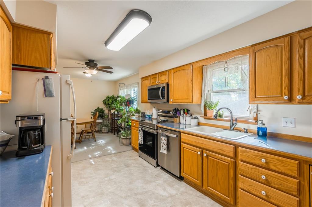 Welcome home to this beautifully maintained 3-bedroom, 2.5-bath ranch perfectly situated on a corner lot in a quiet St. Joseph neighborhood. You’ll love relaxing on the large front porch or entertaining on the oversized back deck overlooking the spacious yard. Step inside to find a warm and inviting living room featuring gleaming hardwood floors and a gorgeous stone fireplace. The kitchen offers plenty of cabinet and counter space, complemented by stainless steel appliances and a sun-filled dining area surrounded by windows. Both bathrooms on the main level have been tastefully updated with modern finishes, including sleek tile work, contemporary fixtures, and a fresh, clean design. The finished basement expands your living space with a comfortable family room, half bath, and bonus area perfect for a home office, hobby space, or guest retreat. Additional highlights include an attached garage, mature landscaping, and an ideal layout that combines charm, comfort, and functionality.