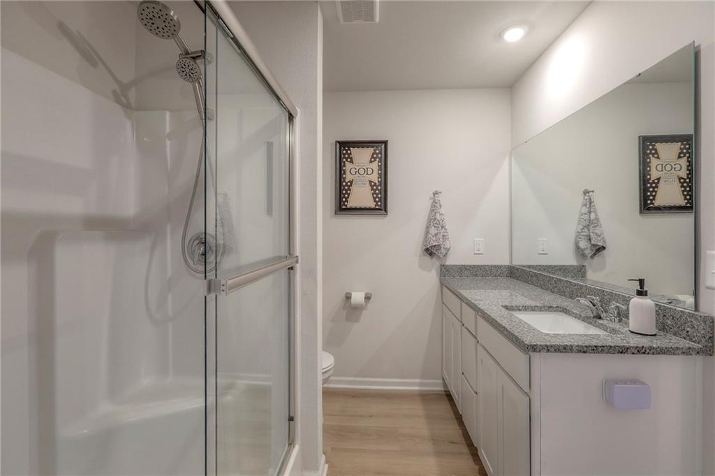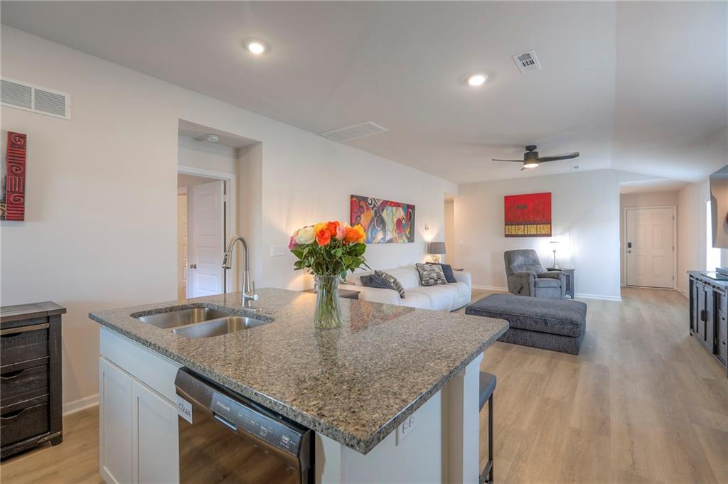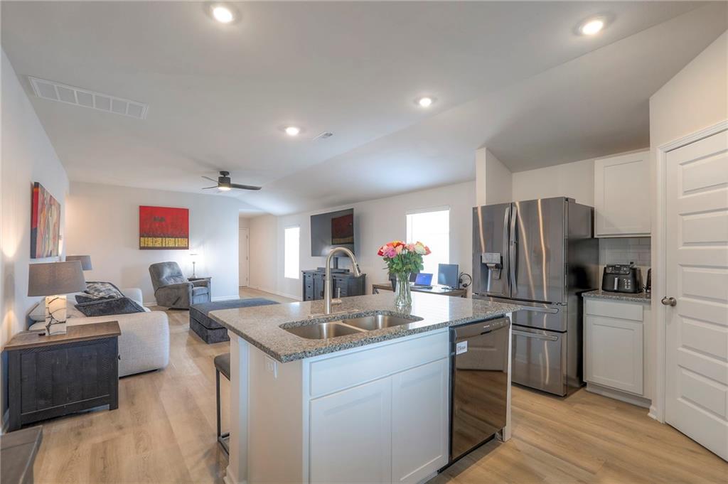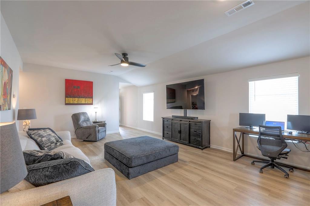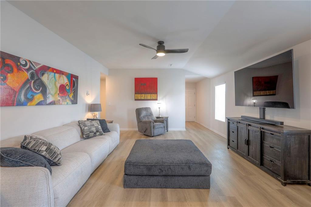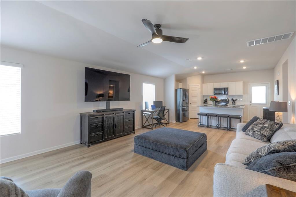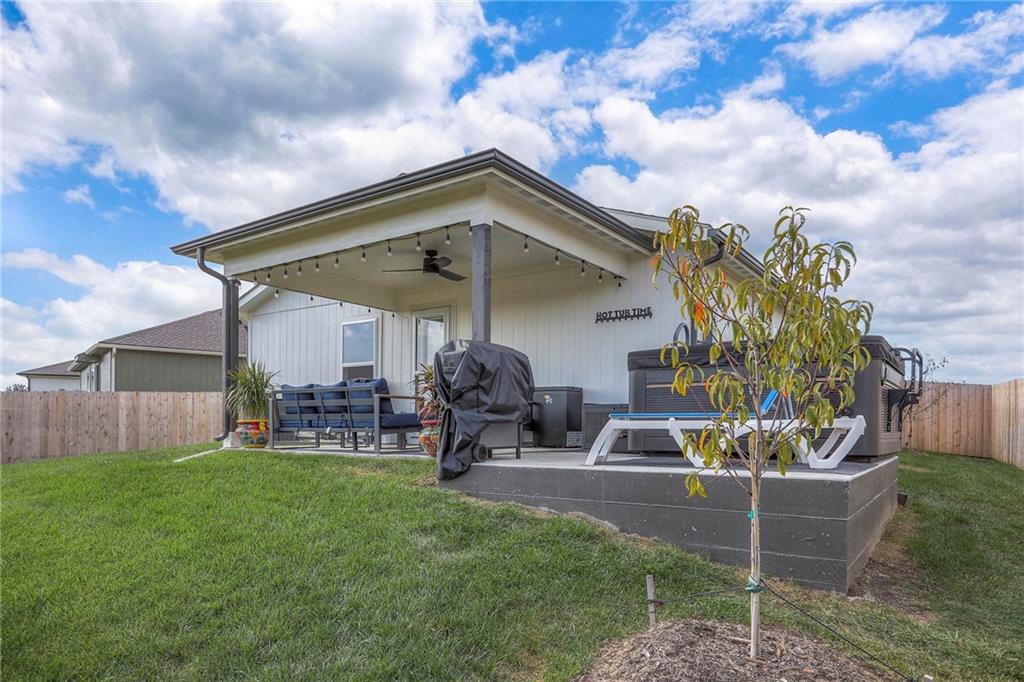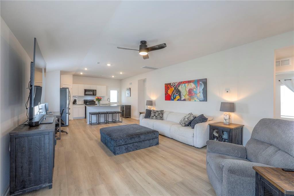 Pay below builder pricing on this 2025 new construction home! **Barely lived in, over $25k in upgrades.**. Come see it to believe it! The ultimate outdoor backyard oasis! Located just 12 minutes from the Legends. **Covered back porch**. Incredible landscaping including all new front landscaping, rock path from driveway to side gate, and three raised beds, trees, and rose garden in the backyard. Six ft cedar fence with double-boarded interior finish on fence. **Five new ceiling fans operated with remote control.** Decorator blinds on all windows and upgraded storm doors (with glass and screen options) on both doors. Enjoy the ultimate outdoor backyard oasis under your covered patio surrounded by beautiful landscaping. **And don't forget, the builder warranty is in place until May 2026.**