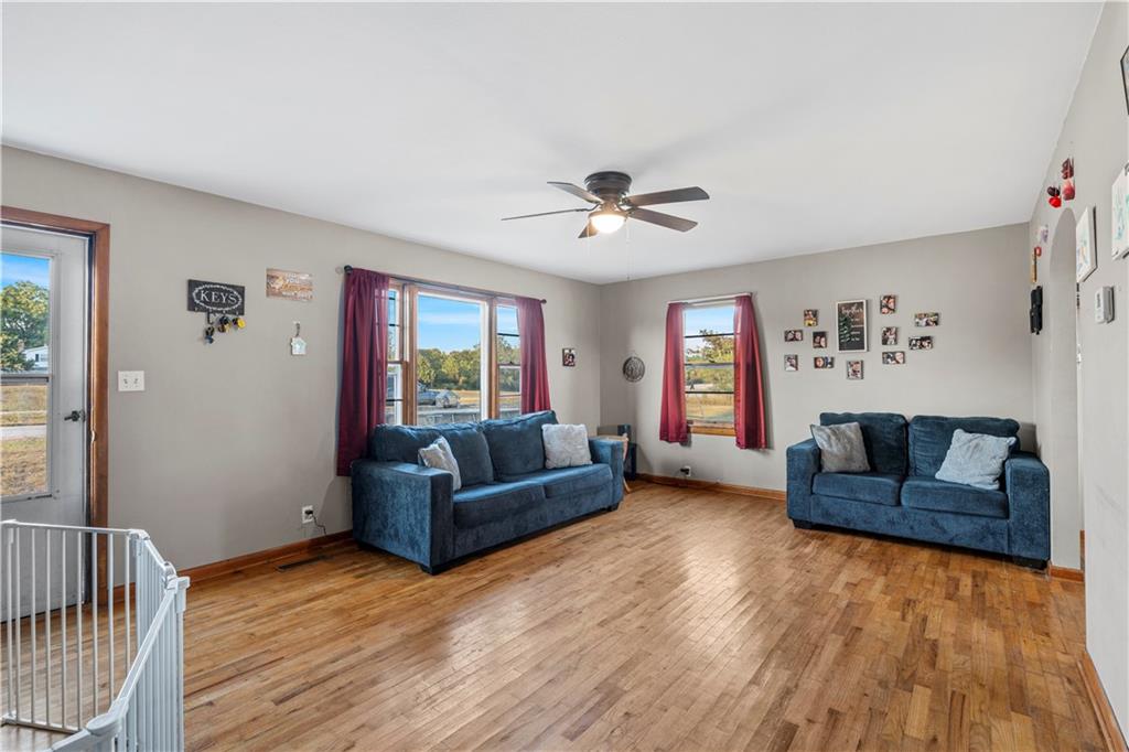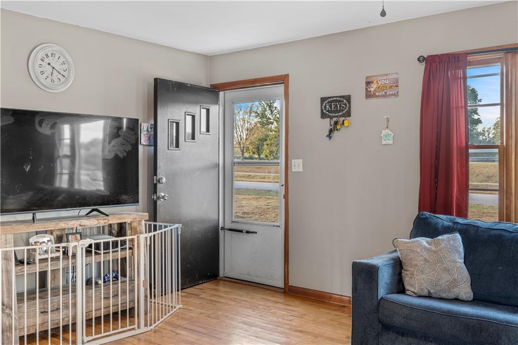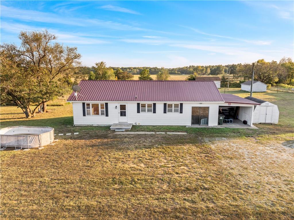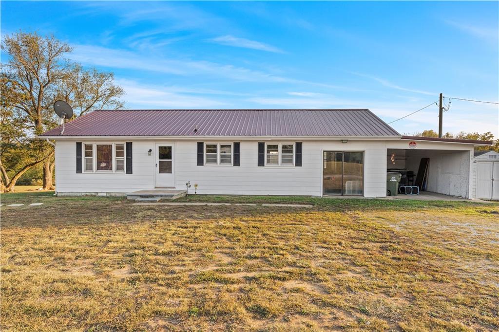 Looking for a little more space without giving up convenience?! This 2-bedroom, 1-bathroom home offers 1,300 square feet of living space on 2.61 surveyed acres just outside the city limits of Nevada, Missouri, in the Nevada School District. Positioned just off 54 Highway, the property provides easy access to both Nevada, MO and Fort Scott, KS, making it an ideal location for those who value both space and accessibility. Inside, you’ll find original hardwood floors flowing through the main living area and bedrooms, creating a warm and inviting feel. The refrigerator and range stay with the home, making move-in simple. A converted garage adds additional living space — perfect for a second living room, home office, or the potential to transform into a third bedroom to fit your needs. Outside, enjoy the detached shed for storage, attached carport for covered parking, and a new metal roof for added value and peace of mind. While a portion of the acreage lies within a mapped floodplain, the home itself is not located in a floodplain, offering peace of mind and usable open space. With its combination of versatile layout, convenient location, and open land, this property presents an excellent opportunity for a starter home or investment. **Showings begin Monday October 20, 2025** Please note that overnight notice is required — be sure to call in advance to schedule your showing!