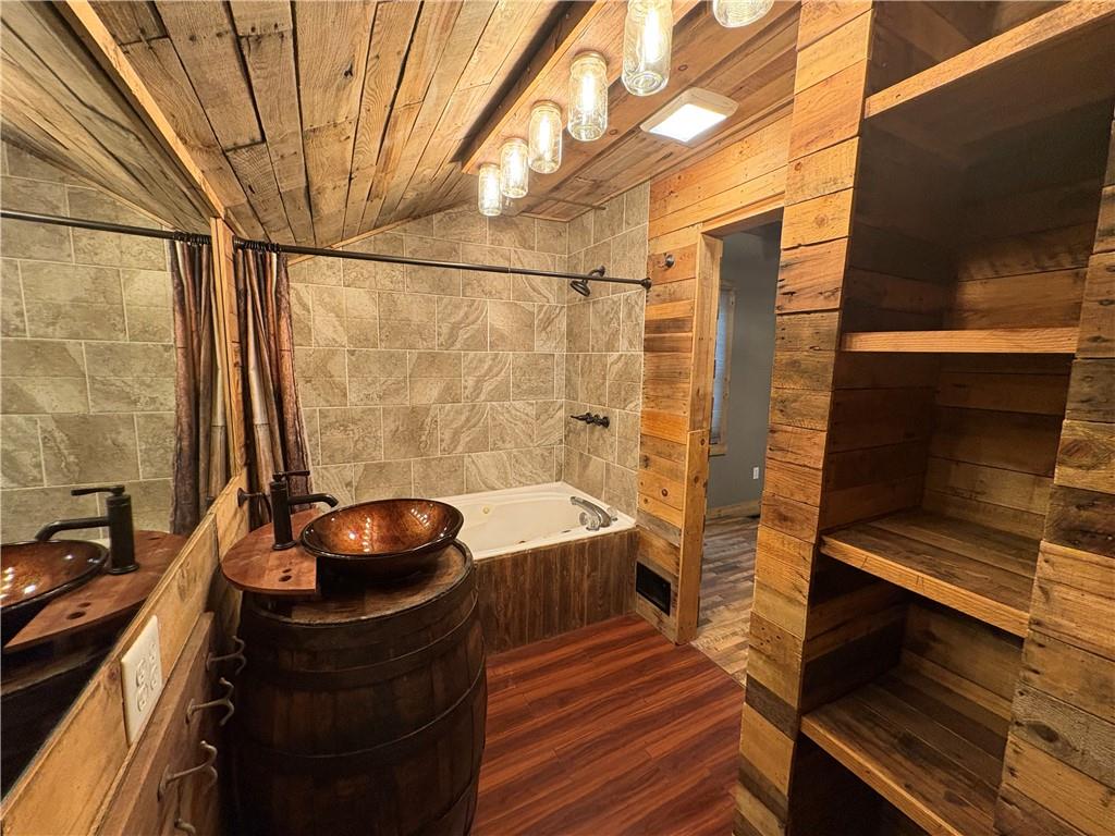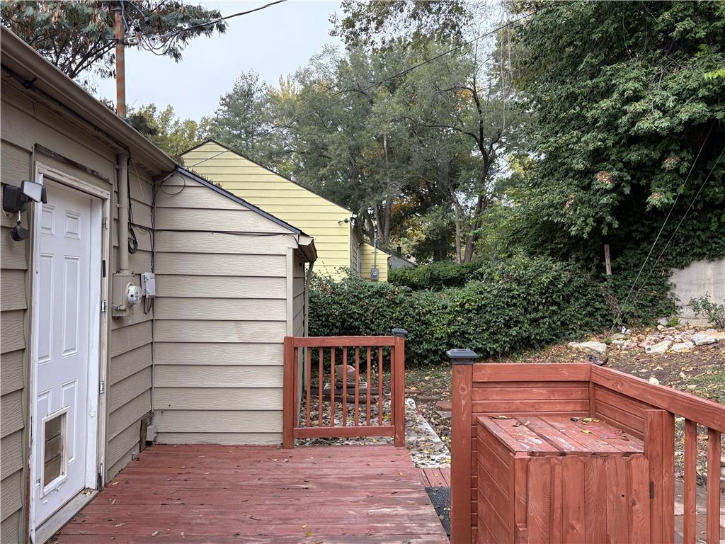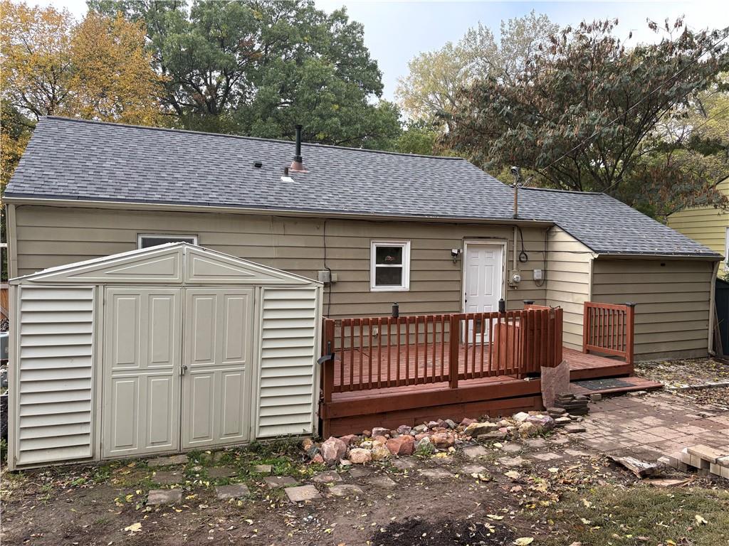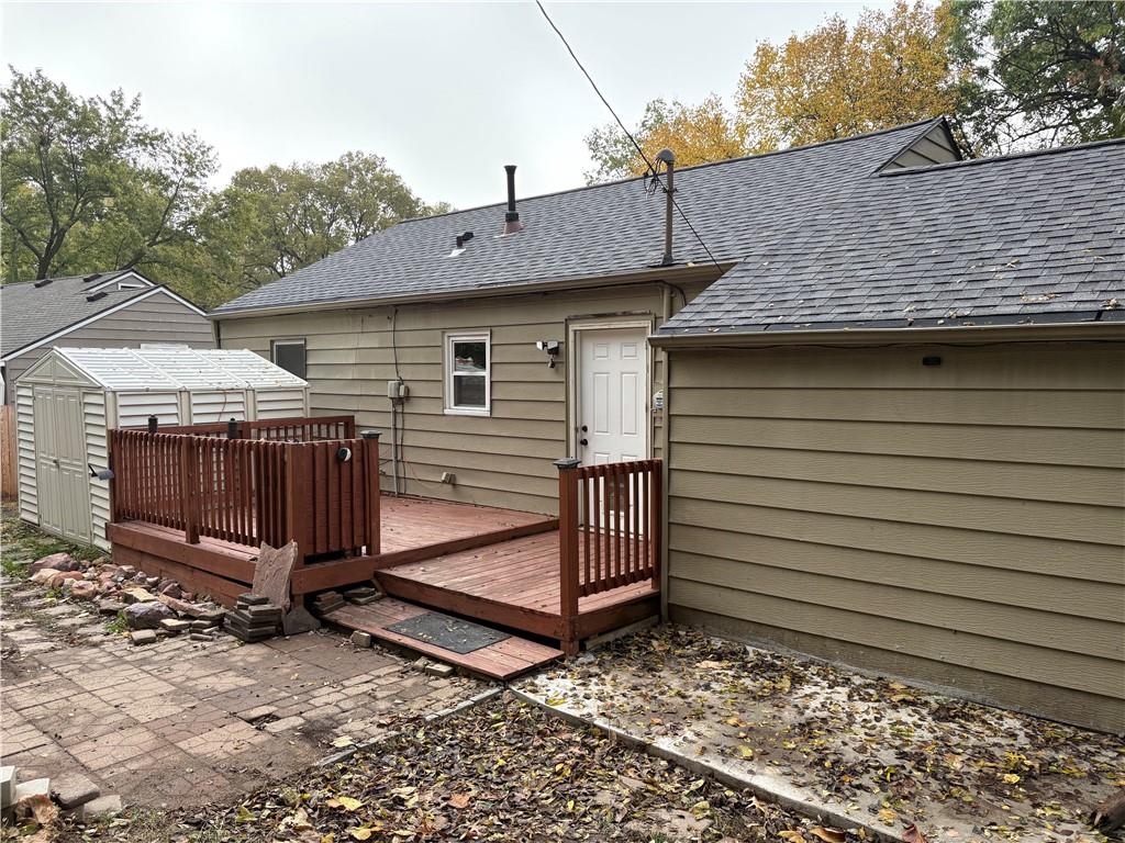 Welcome to this charming, move-in ready ranch, tucked into a a quiet, established neighborhood. This home provides many thoughtful updates both inside and out. The primary suite features wood-accent finishes, a barn door leading to the master bathroom, whiskey barrel sink, dual waterfall and rain shower heads, and a new jacuzzi tub. The two secondary bedrooms are well-proportioned and share a full bathroom. The living and dining room flow seamlessly, ideal for everyday living and entertaining. The kitchen allows you to conveniently step outside to your private deck/fire-pit area with a fenced in backyard, perfect for relaxing outdoors. Two handy storage sheds offer extra space for your yard tools or seasonal belongings. The following interior/exterior items have been completed in the last 4 years: tankless water heater, new dishwasher, jacuzzi tub, kitchen countertop and large stainless steel sink, composite roof, windows and doors, lined and insulated crawlspace, deck, privacy fence, sump pump, and attic insulation. This home is conveniently located across the street from a walking trail and park as well as within walking distance of Crestview Elementary. It also allows for easy access to local shopping and MCI airport. Buyers agent to verify ALL.