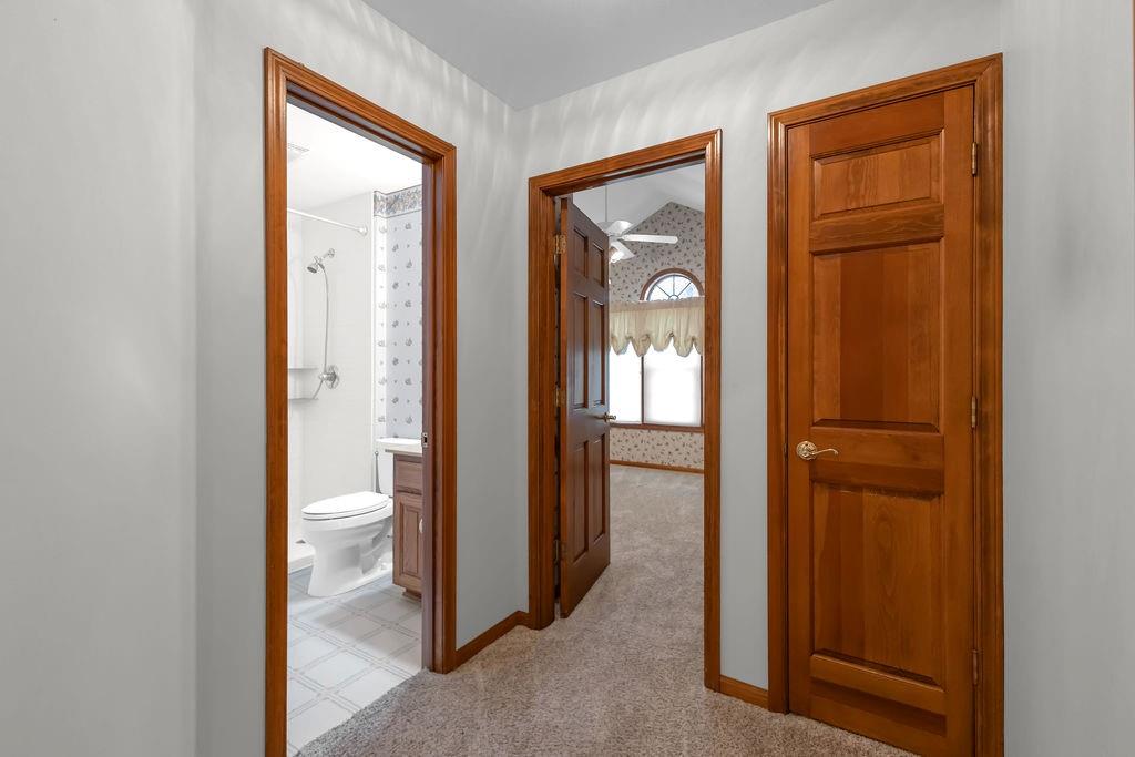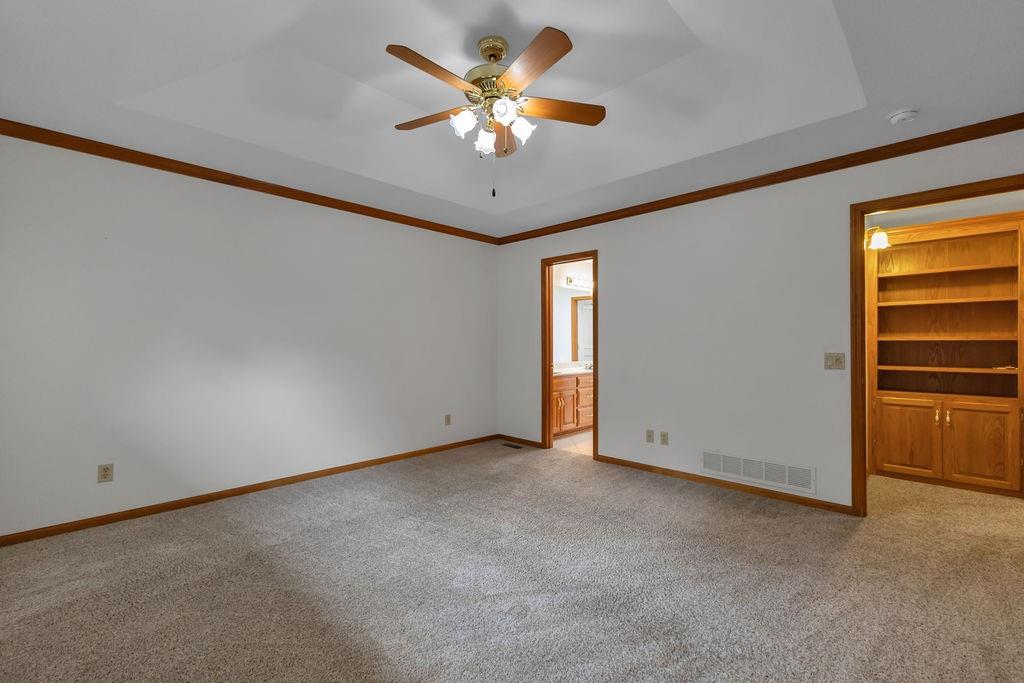 This beautifully cared-for, one-owner townhome offers nearly 3,000 square feet of finished living space and showcases pride of ownership at every turn. Step inside the welcoming tiled foyer with a coat closet and immediately feel at home. The formal dining room flows seamlessly into the formal living room, creating an elegant setting for entertaining. The spacious eat-in kitchen is a chef’s dream, featuring quartz countertops, abundant cabinetry including a pantry with pull-out shelves, gas cooktop, electric wall oven, built-in microwave and dishwasher, and stainless steel refrigerator. Enjoy morning coffee in the cozy dining nook or relax on the screened-in porch surrounded by mature trees. The primary bedroom suite is a serene retreat with a tray ceiling and a spa-like ensuite bath offering dual sinks, a jetted soaking tub, separate shower, and dual walk-in closets – including one custom designed with island storage. A sun-filled guest bedroom with vaulted ceiling, a full hall bath with shower, and a spacious laundry room with built-in storage complete the main level. The finished walk-out lower level is designed for comfort and entertainment, boasting a large recreation room with built-in entertainment center and surround sound speakers, and direct access to the walk-out patio. Two additional bedrooms, a full bath with shower, two oversized storage rooms, and under-stairs storage provide ample space for guests and organization. Additional highlights include an attached garage with epoxy flooring and attic access, central vacuum system, and the peace of mind of a completed pre-inspection with repairs already completed. Every inch of this home reflects thoughtful design, meticulous upkeep, and timeless quality—making it a rare find in one of St. Joseph’s most desirable neighborhoods.
