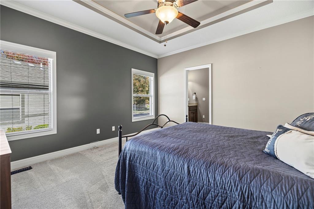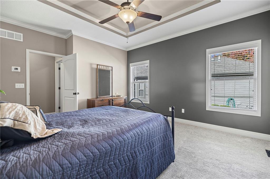 James Engle’s popular “Downing Reverse” plan — featuring a main-level Master Suite and a walkout lower level. Well maintained, maintenance-provided villa. Features include hardwood floors, new basement carpet, fresh Interior paint, high ceilings, and plantation shutters. The kitchen offers an oversized island, large pantry, and opens to the living room and breakfast nook. Lower level features a second living area with fireplace, full bath, and large storage area Enjoy the freshly stained deck and walk out basement that backs to green space. HOA covers exterior paint, lawn care, snow removal, and common areas. Convenient to highways, Cedar Niles trails, shopping, dining, and the neighborhood pool.